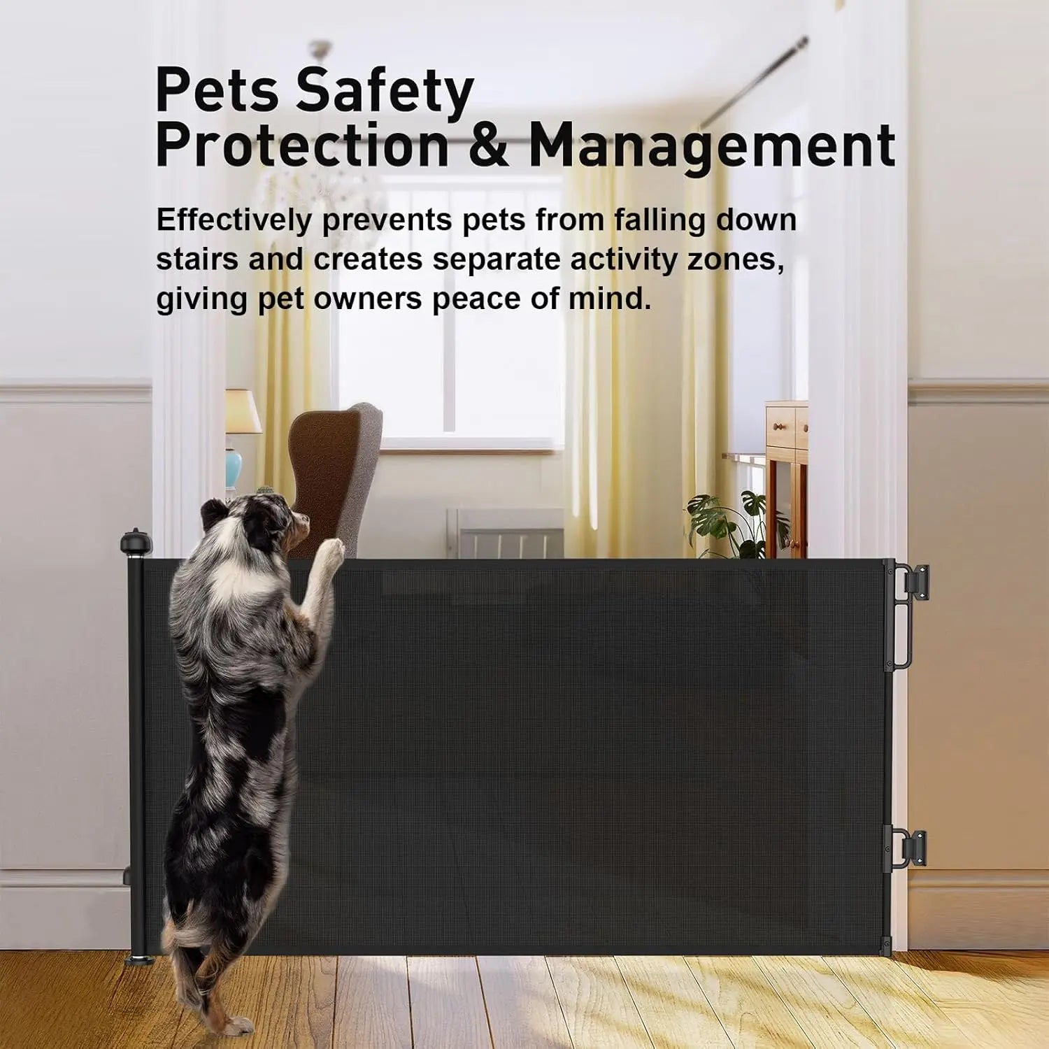 2-Pack Retractable Baby Gates for Stairs, 55" Wide Soft Mesh Pet Gate for Dogs with One Hand Opening, 34" Tall Toddler Gate