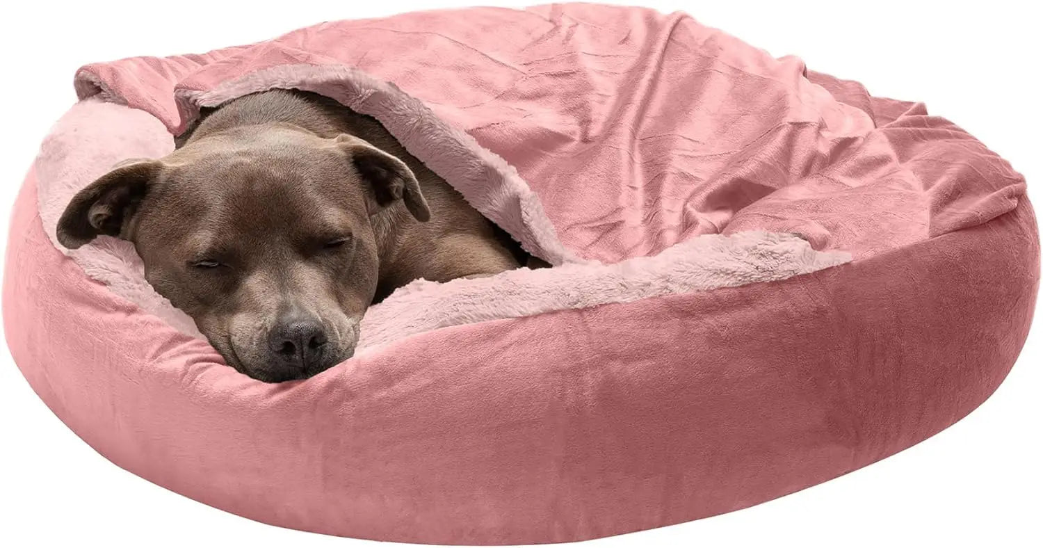 PRODUCT DETAILS: Hooded Donut Bed, Rose Pink; Medium - 27" Round