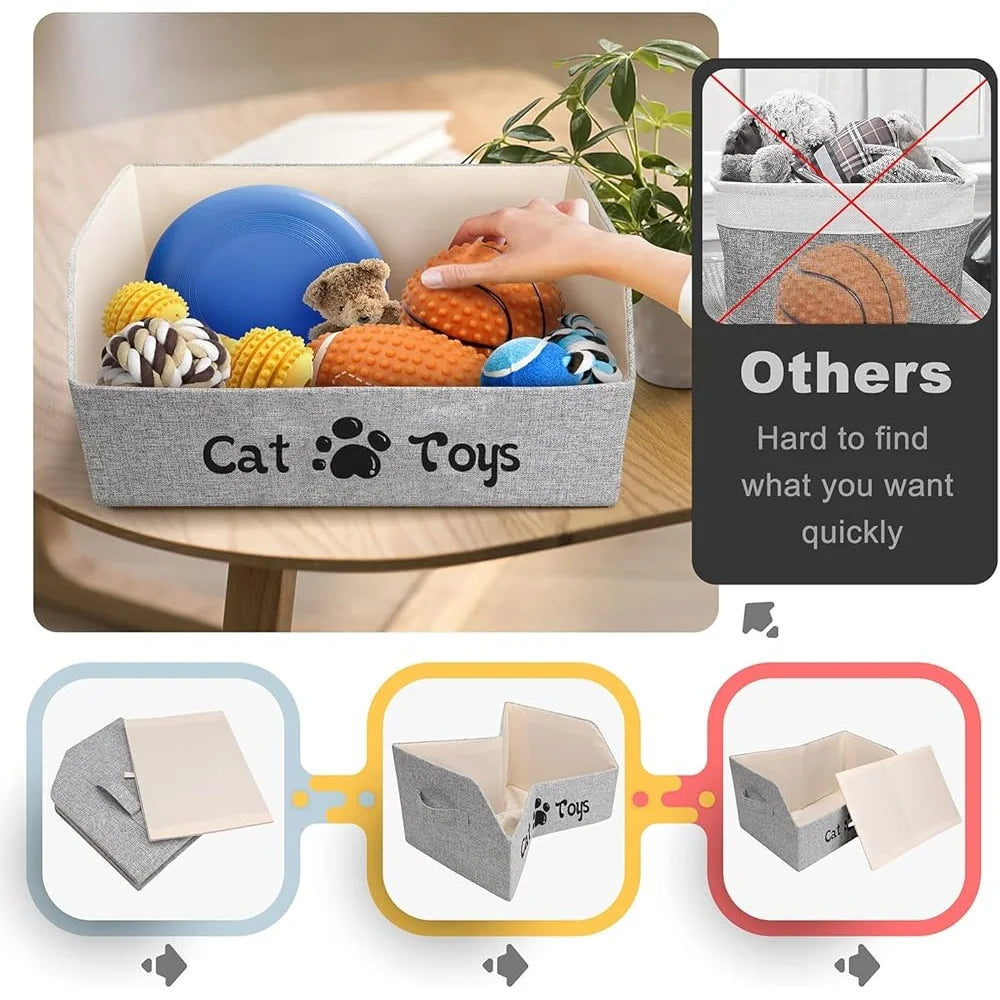 2X Thick Large Cat Toy Storage Basket Foldable Organizing Cat Toys Bed Kitten Toy Bin Durable Dirt-resistant Collapsible Pet