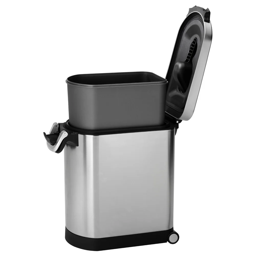 A silicone gasket forms an airtight seal so food stays fresh. The can includes a convenient scoop that attaches magnetically under the lid. The storage container's large capacity (30-35 lb. /14-16 kg) is ideal for storing dog or pet food or other bulk items like flour, rice, sugar or charcoal.