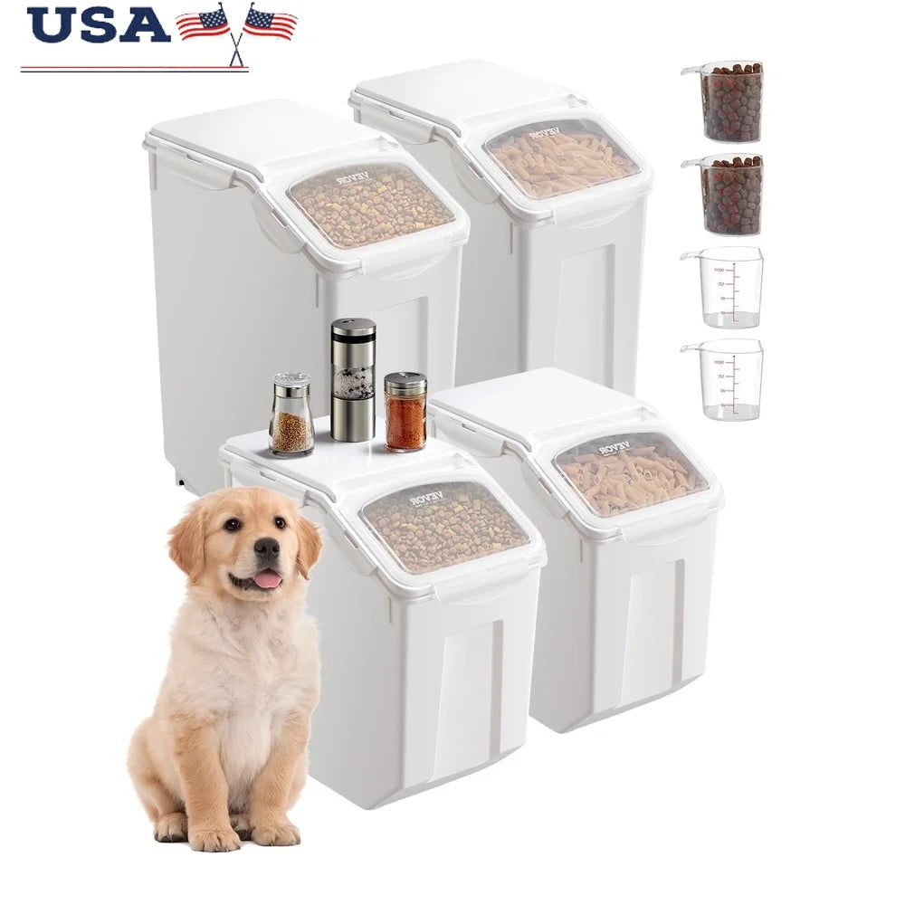 4PCS Airtight Food Storage Containers 15L 20L Large Capacity Pet Food Dispenser Kitchen Ingredient Bin Stackable Design with