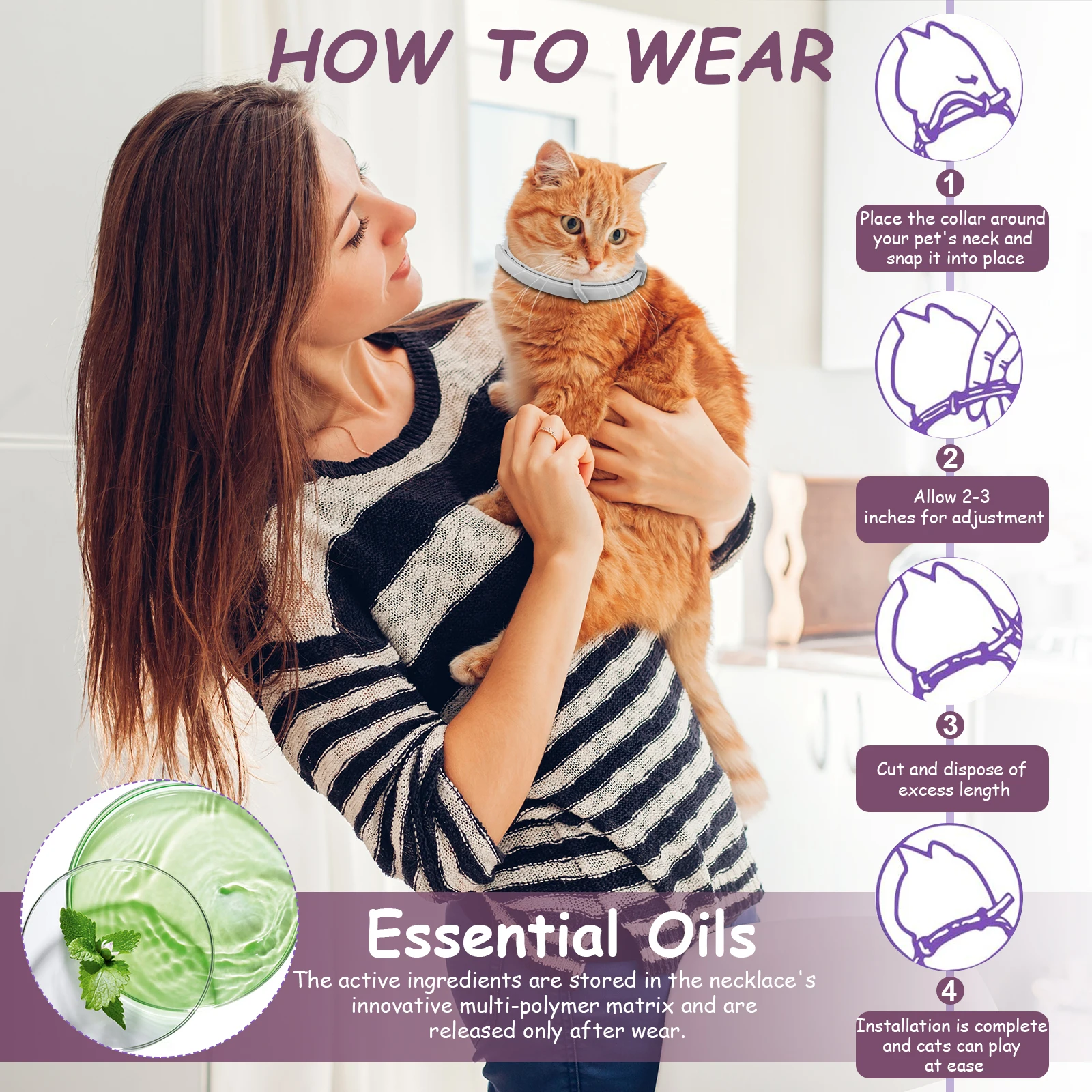 4Pcs Cat Calming Collar Soothing Collar Anti-Anxiety Cat Pheromone Collar Helps with Aggression Calming Pheromone Collar Pet Supplies Features: 1. Stress-Relief for Cats: This cat calming collar helps soothe stressed cats during moves, loud noises, travel, and environmental changes. It reduces scratching and inappropriate urination, promoting comfort and calmness both indoors and outdoors. Specification: Origin: Mainland China Material: Silicone Total Length: 38cm/14.96inch Width: 1cm/0.39in Ingredients: Chamomile Essential Oil, Lavender Essential Oil Suitable For Cat Neck Circumference Range: 13-33cm/5.11-12.99in Note: