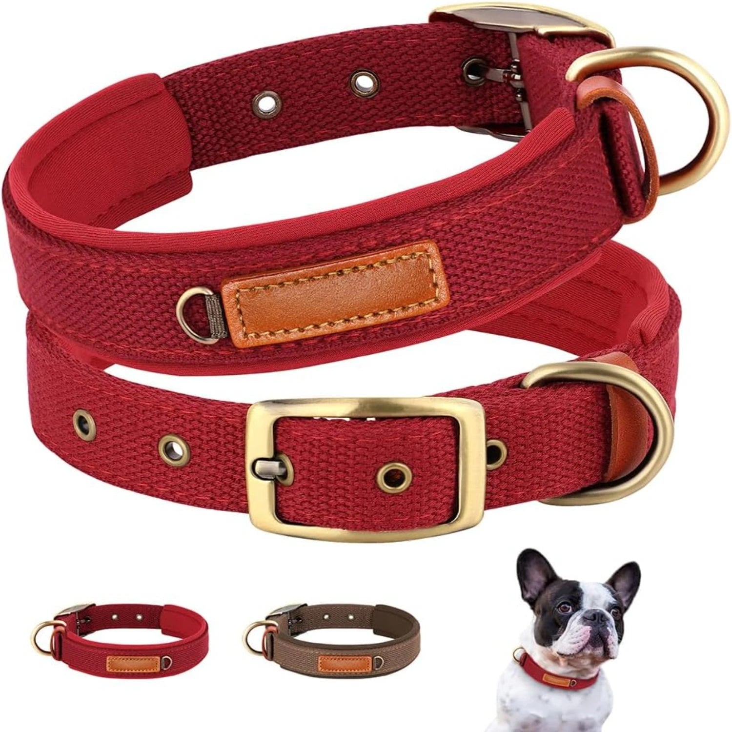 1. Make walks with your furry friend a breeze with this soft and convenient red adjustable neoprene nylon dog collar.