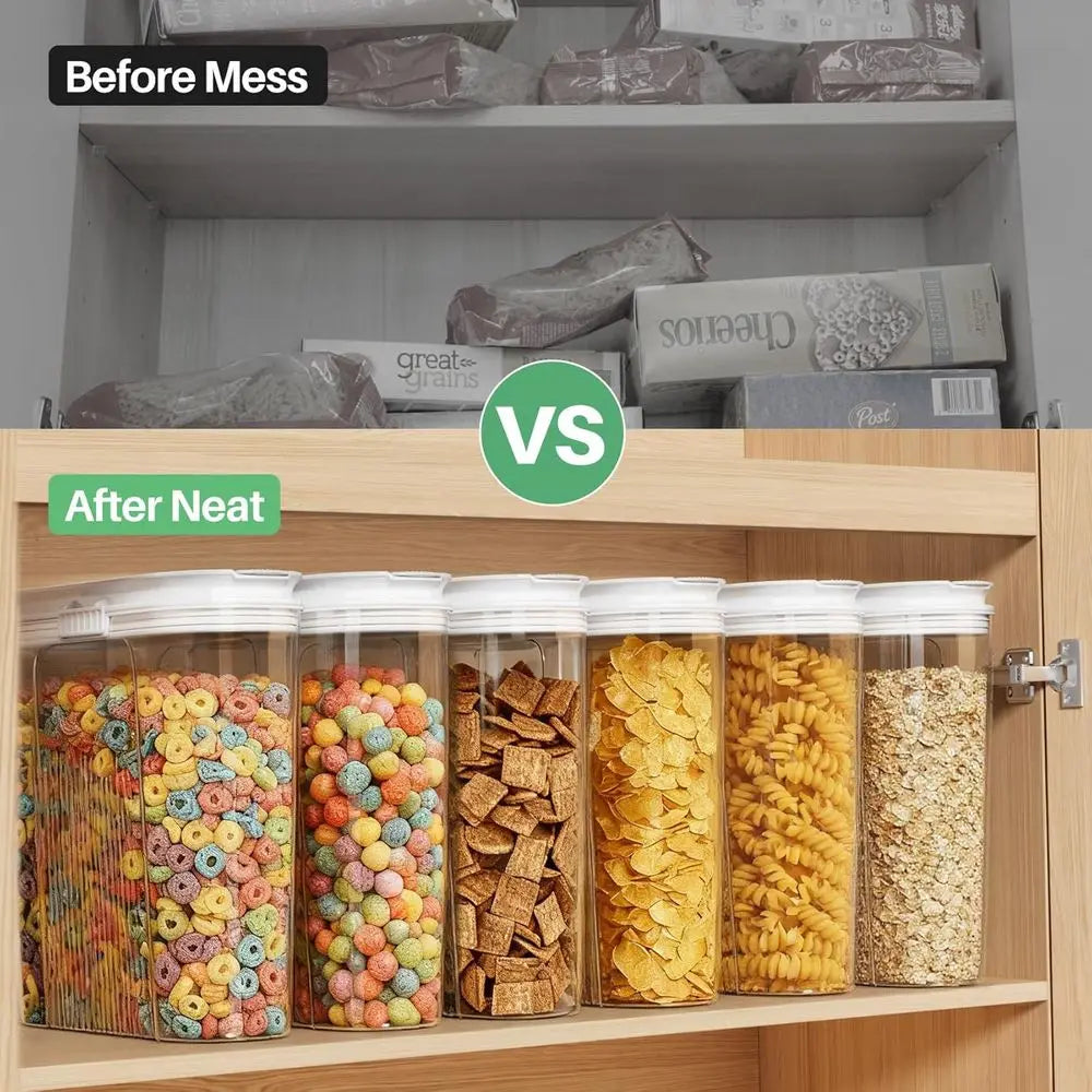 Premium PET Material with Crystal Clarity - Crafted from durable, food-grade PET, these plastic cereal storage containers are BPA-free, odorless, and beautifully clear. The crystal-like transparency allows you to instantly see the contents of each food storage container, enhancing both functionality and elegance in your pantry organization.