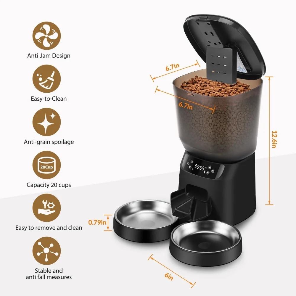 Automatic Cat Feeders for Two Cats, 5L/20 Cups Double Automatic Cat Food Dispenser with 2 Stainless Bowls, Timer Setting 20 Port
