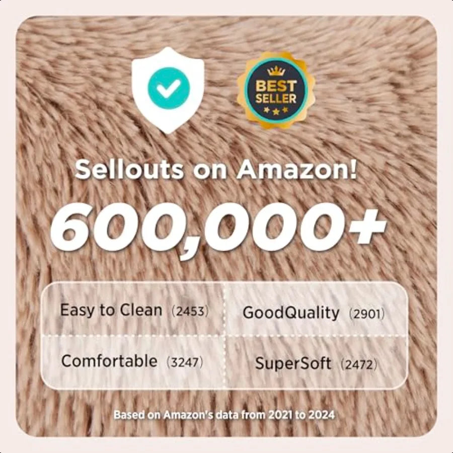 Calming Dog Bed for Small Dogs Donut Washable Small Puppy Bed 23 inches AntiSlip Round Fluffy Plush Faux Fur Large Cat Bed Fits
