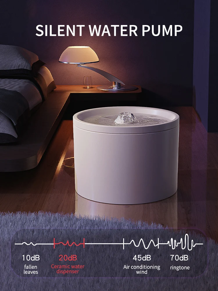 Circulating live water design, easily solving the problem of pets drinking water: Built in silent water pump creates a flowing waterway that simulates a gushing spring. The live water is not only rich in dissolved oxygen and improves the freshness of water quality, but also accurately attracts cats who naturally prefer natural live water to drink actively; It can switch between high-frequency cycling during the day and intermittent operation at night, balancing drinking water demand and energy-saving effects.