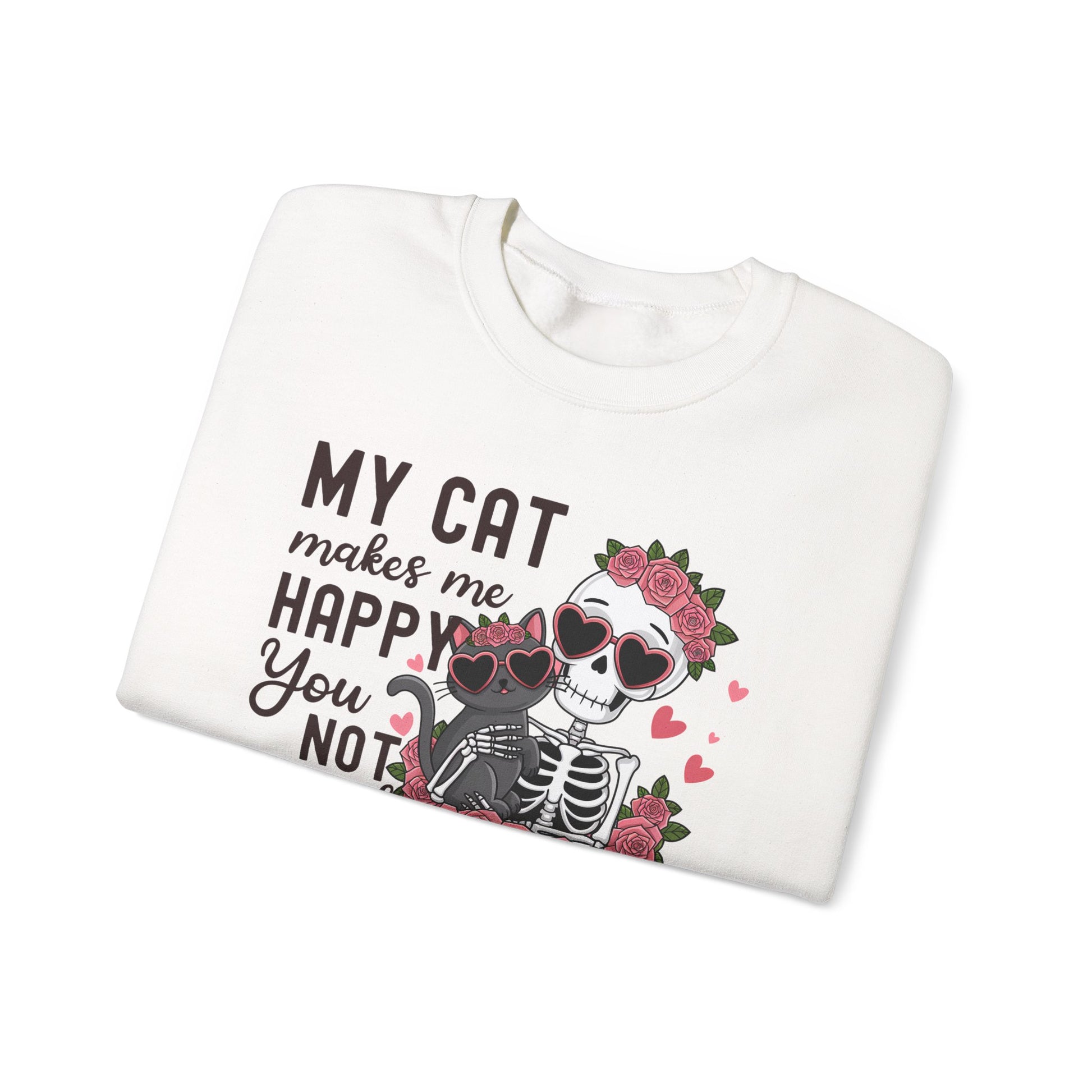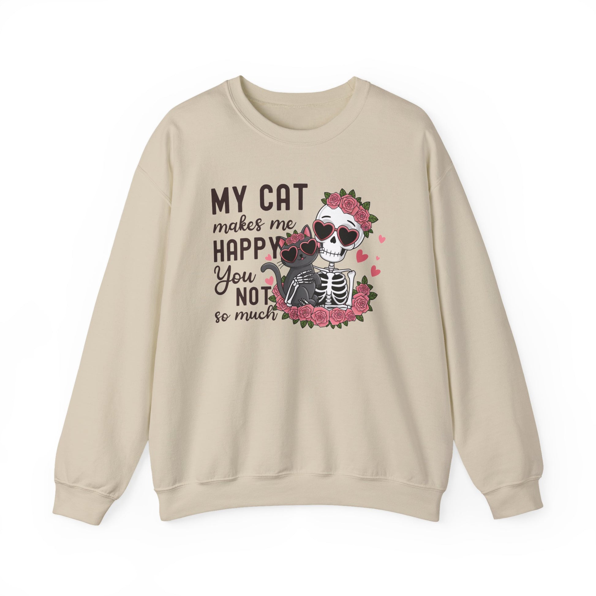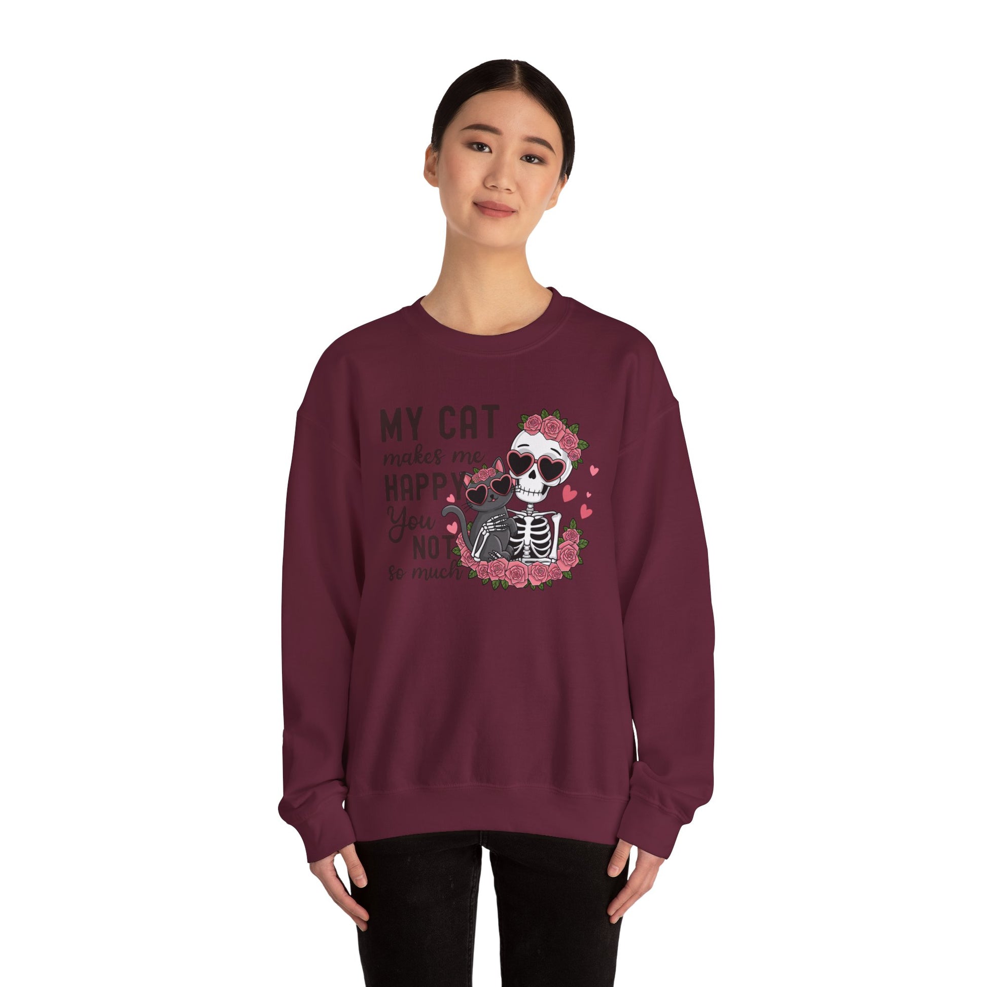 Cat Skeleton Crewneck Sweatshirt — "My Cat Makes Me Happy You Not So Much" Cute Gothic Cat Pullover