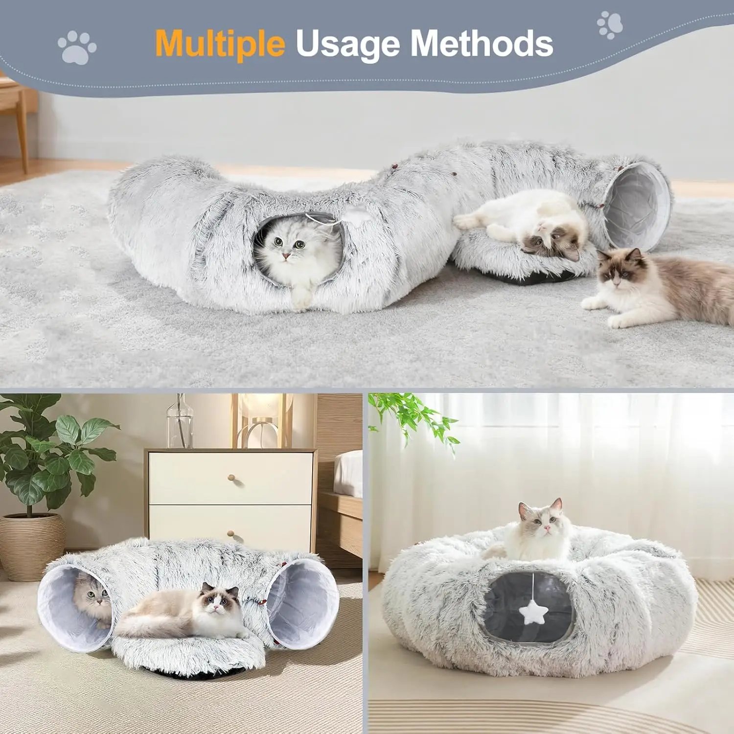 - 🎄Multiple Interactive Details: This cat tunnel with bed features 4 interactive openings and two star-shaped cat toys. The tunnel's 10.2-inch diameter comfortably accommodates cats, creating an interactive playground. It includes a removable 15.4-inch diameter cat bed suitable for one large cat or two small cats to rest on, making it perfect for households with multiple cats.