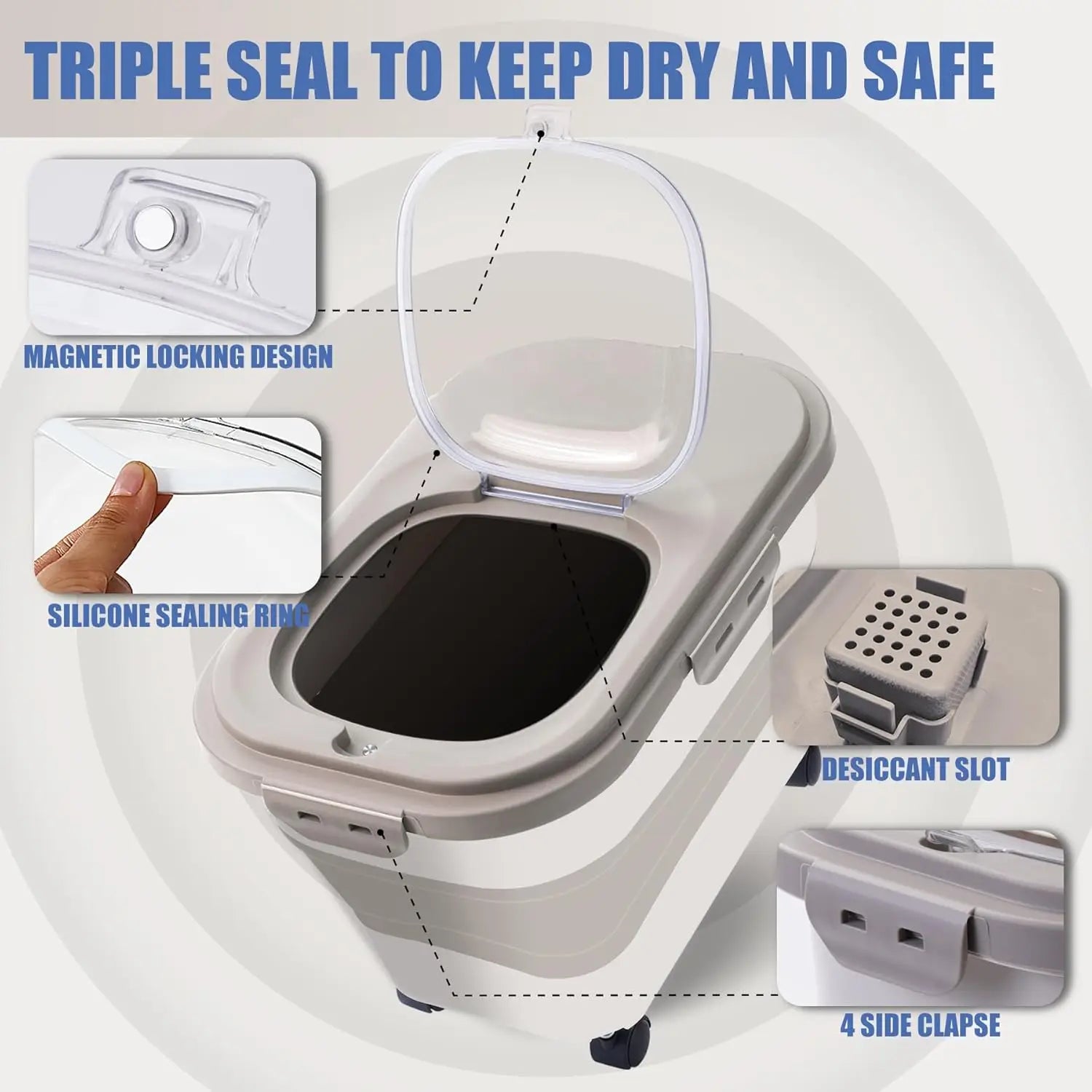 Collapsible Dog Food Storage Container, Airtight 30 35 Lbs Rice Cereal Flour Sugar Kitchen Accessories Bin Bucket, 20 25 Lbs Dog
