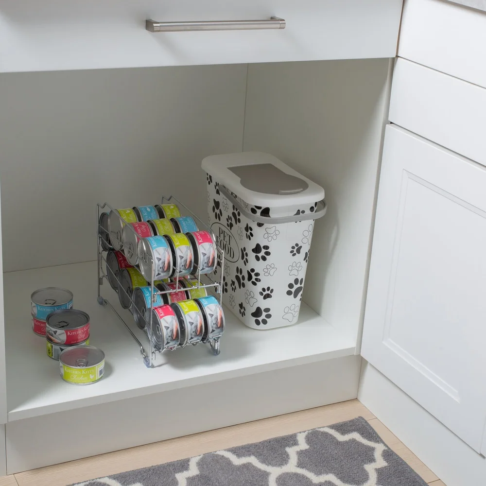 Collapsible Pet Food Can Dispenser Dogs Cats Holds 24 Cans Stackable Durable Steel Space Saving Design Easy Dispensing