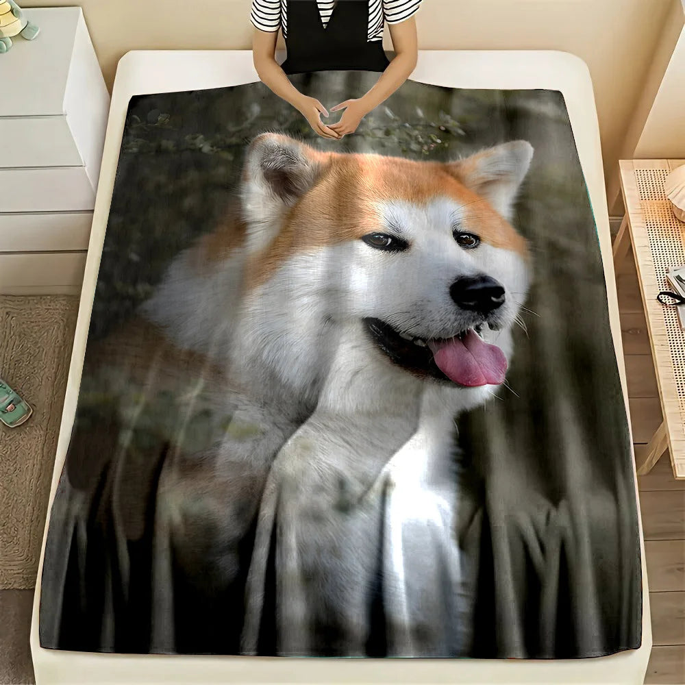Cozy Akita Dog Print Flannel Throw Blanket - Soft, Reversible, All-Season Comfort for Couch, Bed, Office, and Travel