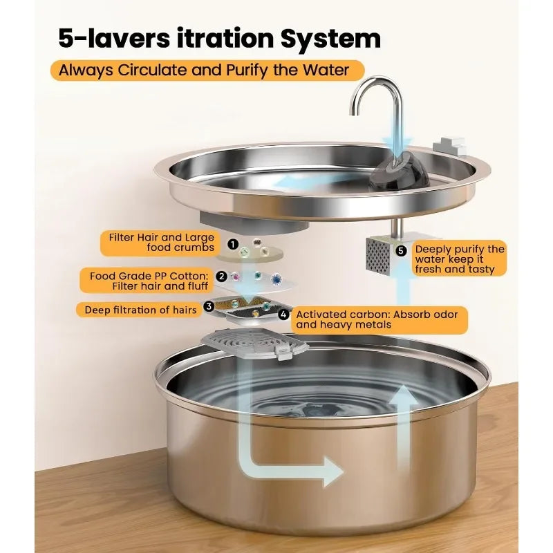 - Boosts Hydration: Fresh-tasting, filtered water entices pets to drink more, aided by an enticing faucet-like spout, automatic dog water dispenser promoting urinary health and disease prevention