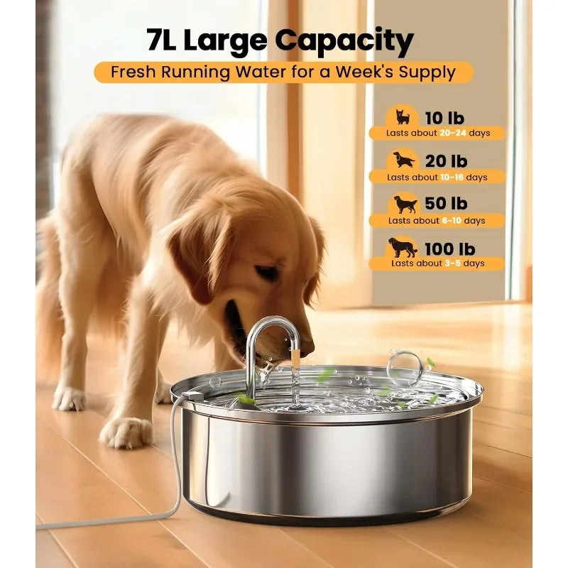 Dog Water Bowl Dispenser,7L Quiet Automatic Dog Water Dispenser Stainless Steel,100% BPA-Free for Cats