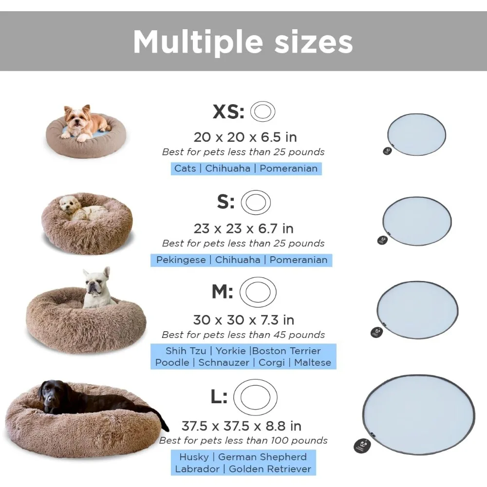 Donut Bed + F R E E Removable Cooling mat, Calming Dog Bed, Washable, Ideal for Small to Large Dogs and Cats & Round Dog Bed, Mu