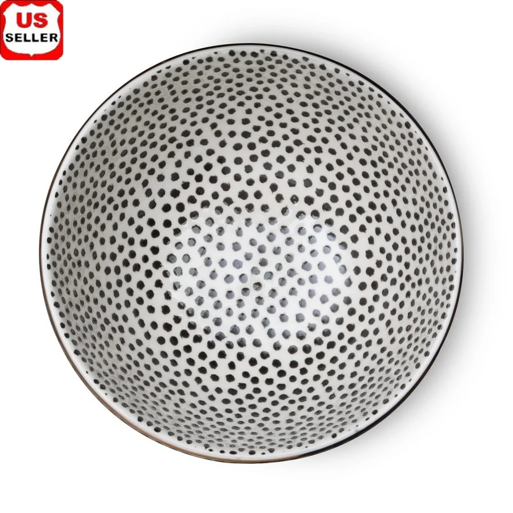 Durable Stoneware Pet Bowl – Black & White Dot Design – Ceramic Cat & Dog Feeding Dish – Microwave & Dishwasher Safe