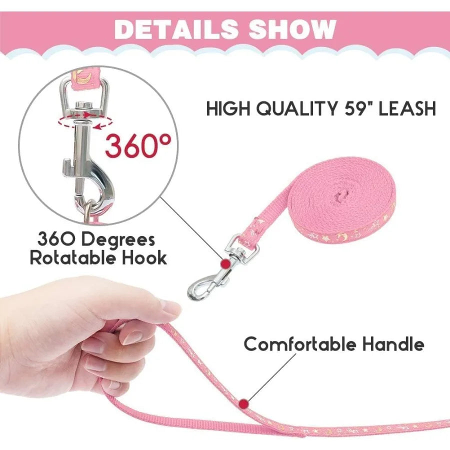 Escape Proof Adjustable HShaped Cat Harness with Leash and Collar Set Featuring Star and Moon Pattern Glow in the Dark Design I