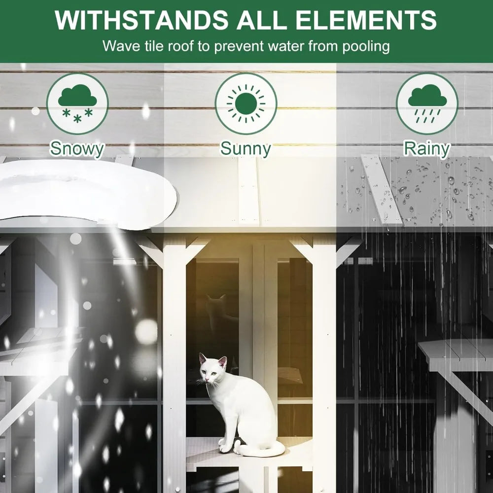 Expandable Window Cat Enclosure for Multiple Indoor Cats, Weather-Resistant Wooden Perch House for Small Pets