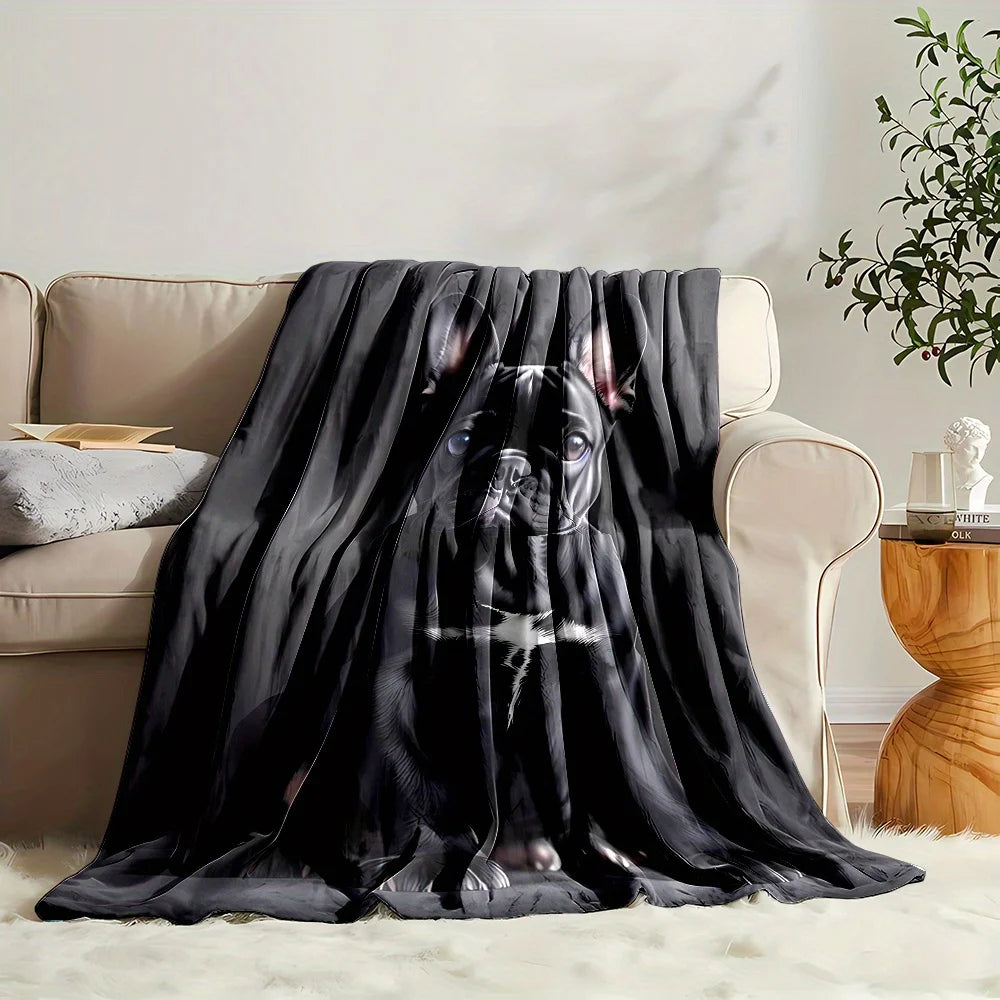 Flannel Fleece Throw Blanket with Cute Black French Bulldog Print - Digital Printing, Reversible, Soft Polyester, Non-Shedding,