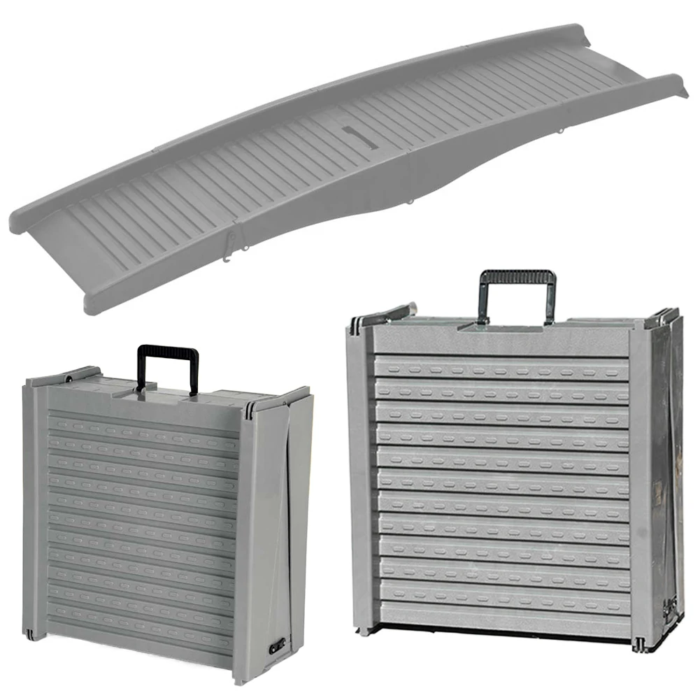 4. Foldable with Handle: The foldable car ramp for dogs easily folds into four sections, with a folded size of 42*41*20cm / 16.53*16.14*7.87in. This compact design allows you to conveniently store it in your vehicle or under beds and sofas, without taking up much space. It's suitable for people of all ages to carry and place.
