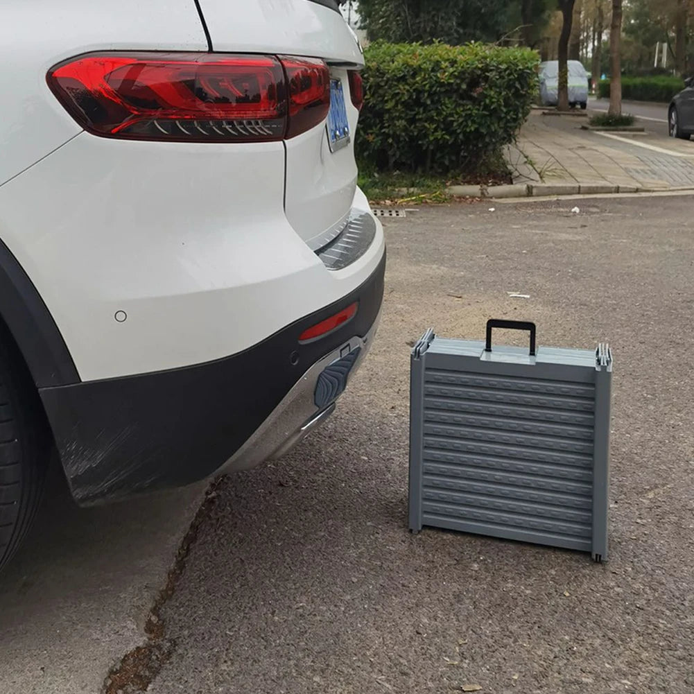 4. Foldable with Handle: The foldable car ramp for dogs easily folds into four sections, with a folded size of 42*41*20cm / 16.53*16.14*7.87in. This compact design allows you to conveniently store it in your vehicle or under beds and sofas, without taking up much space. It's suitable for people of all ages to carry and place.