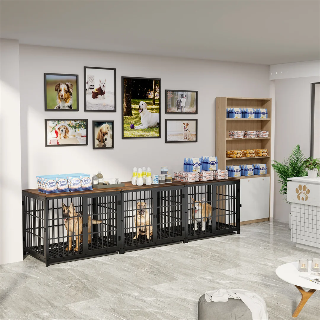 ăDurable Dog KennelăThe pet dog crate is well crafted from thicker heavy metal wires, which features high strength and durability than the thin wire, resistant to deform and destroy, rounded iron tubes design are more resistant to bite than thin ones, the top is made of solid MDF board with beautiful wood grain, supports a weight of 88lbs - 132lbs, water-based paint surface, wipes it clean easily