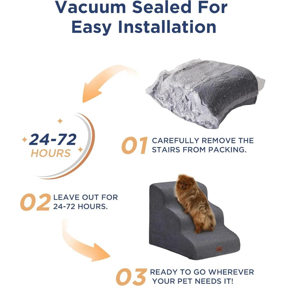- COMFORTABLE PET STAIRS - This foam dog stair is designed directly against the edge of a bed, sofa or other furniture, so your pet can climb up and down comfortably.
