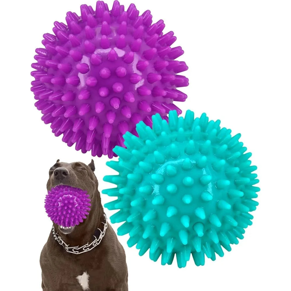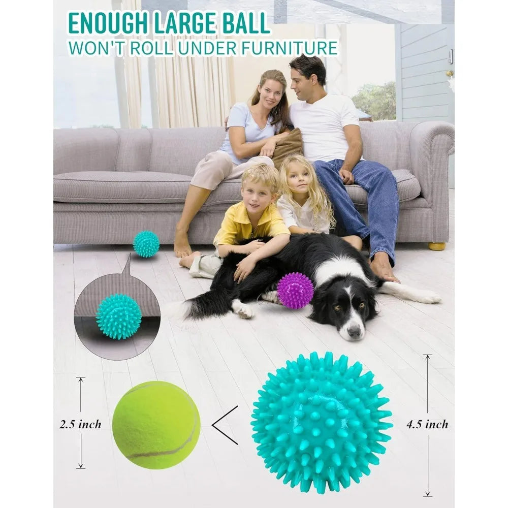 Heavy Duty Squeaky Dog Ball for Medium Large Dogs, Spikey Dog Ball Toys for Clean Teeth and Training