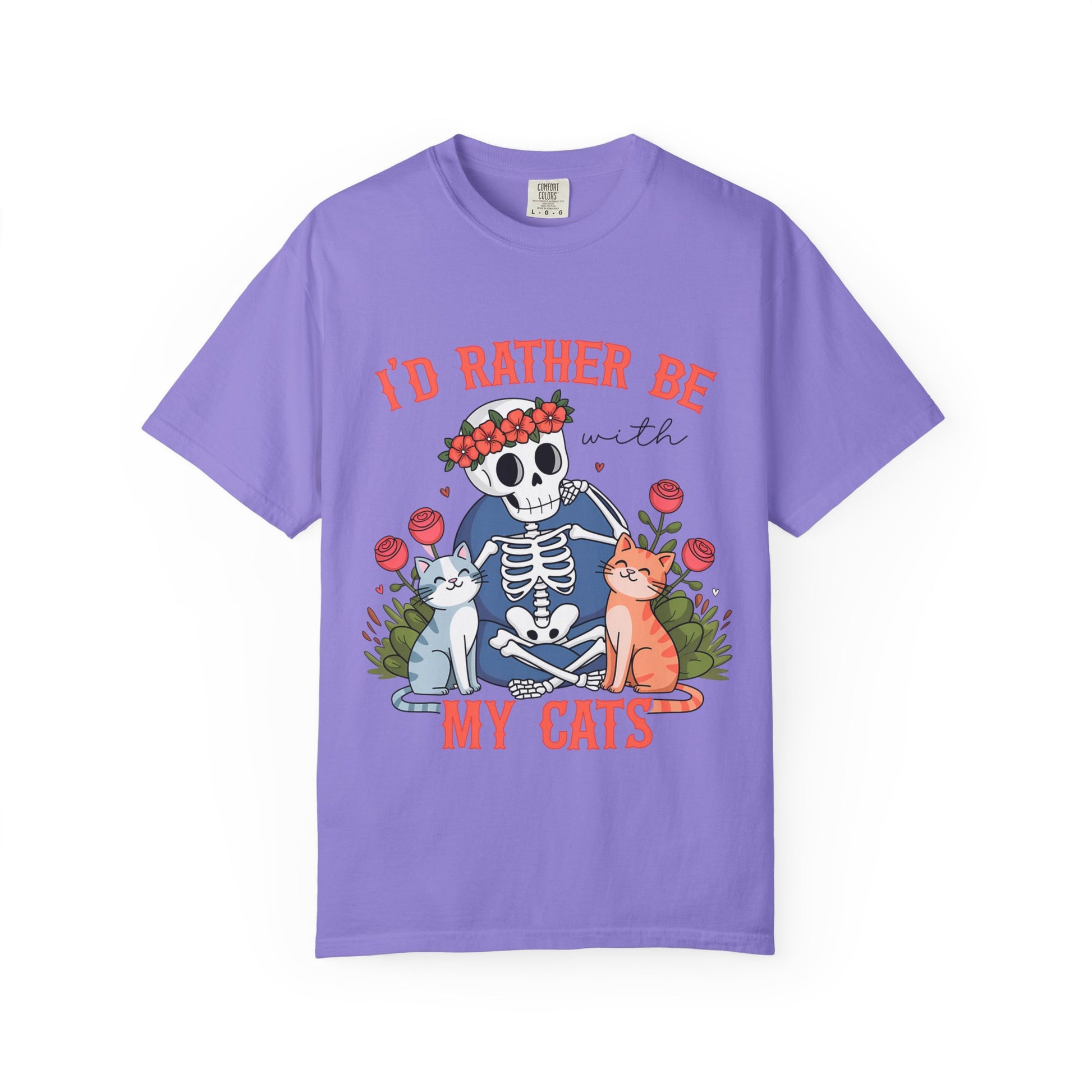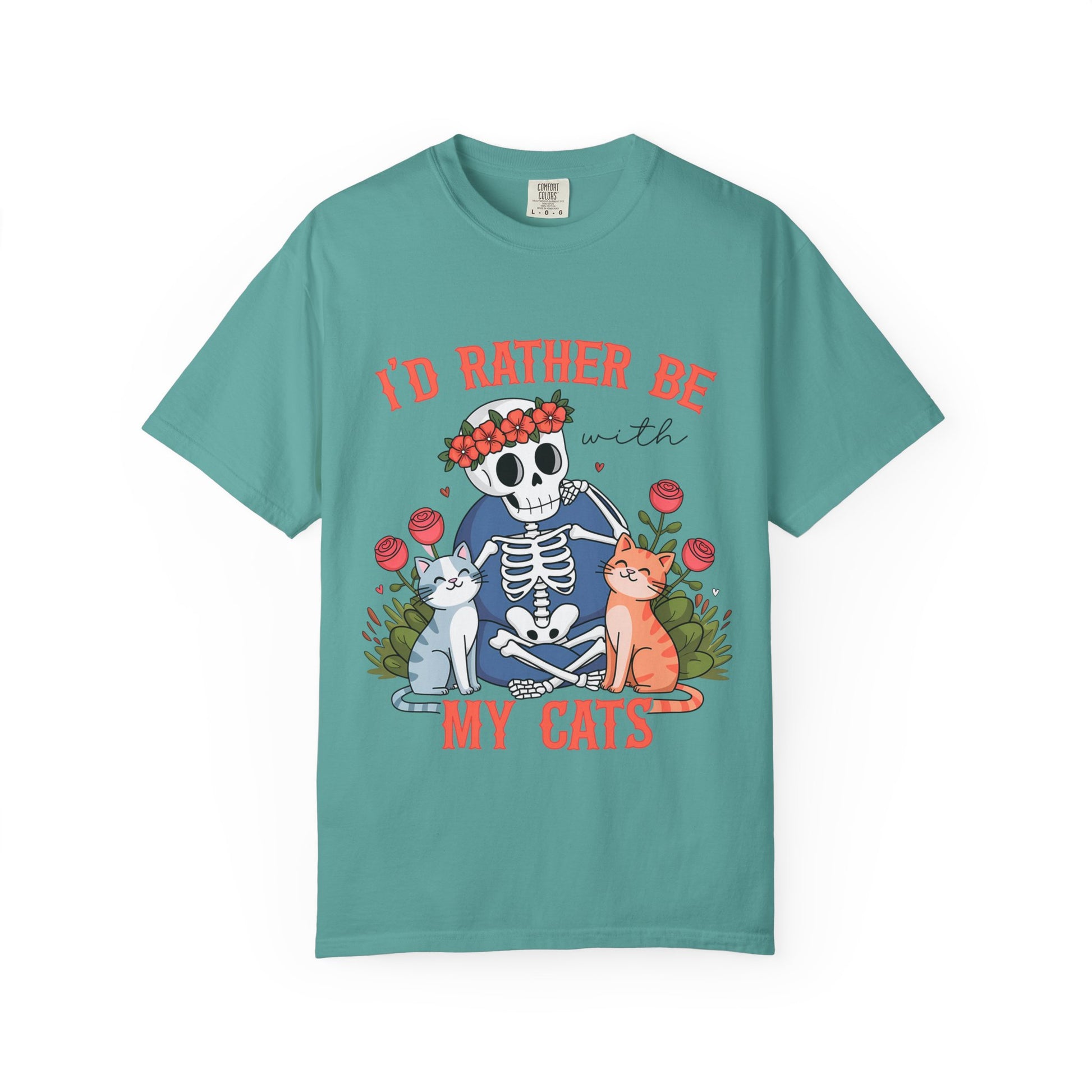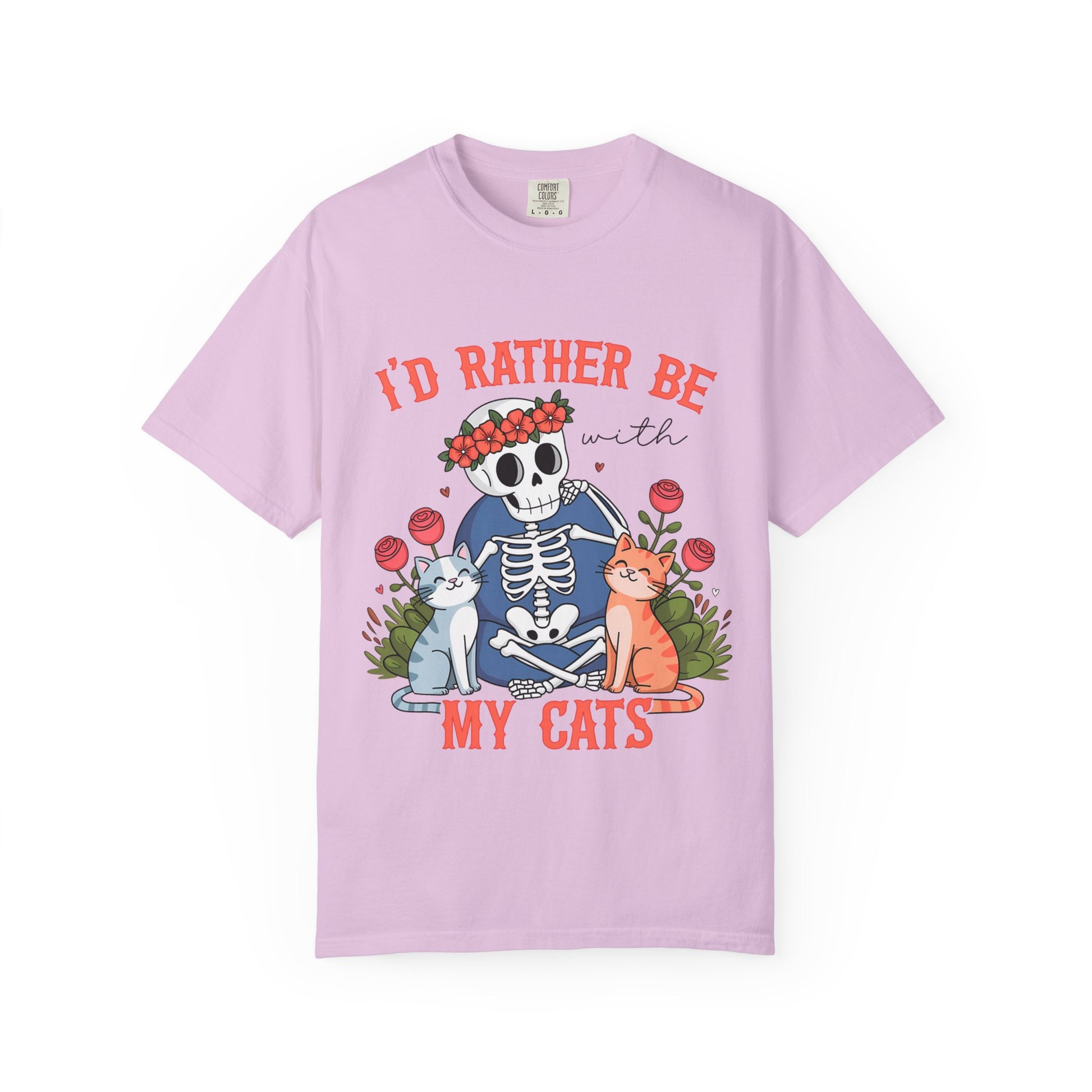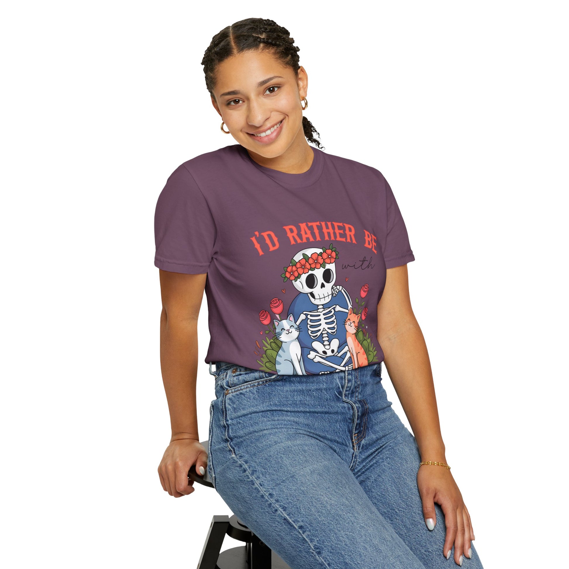 I'd Rather Be With My Cats T-Shirt — Cute Skeleton & Cats Graphic Tee for Cat Lovers