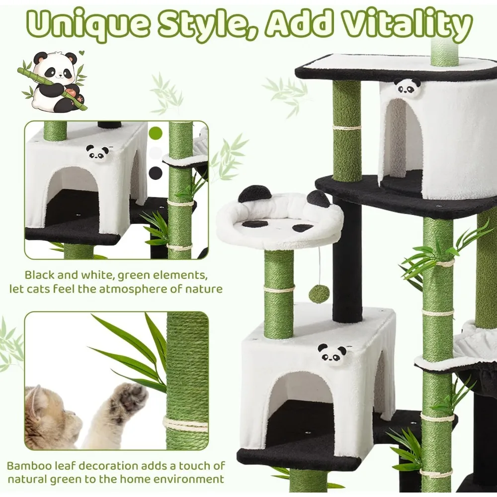 Indoor Cat Tower 71.3 Inches High with Panda Design, Spacious Kitty Condo and Sisal Scratching Posts for Cats