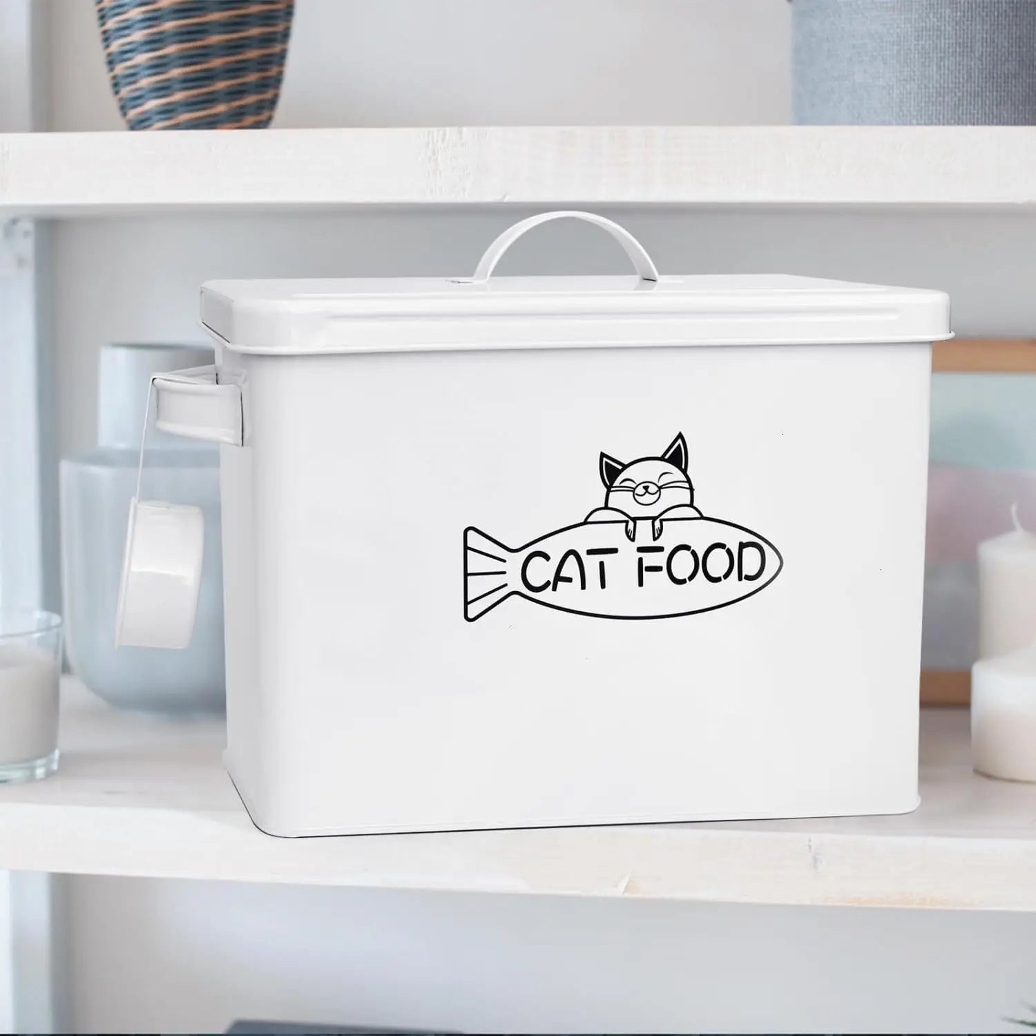 ✔ DURABLE AND STURDY: Unlike glass pet containers that easily shatter, this cat food container is made from food-safe, powder-coated galvanized steel and it won't break after long time of use. Even naughty pets won't be able to break the container.