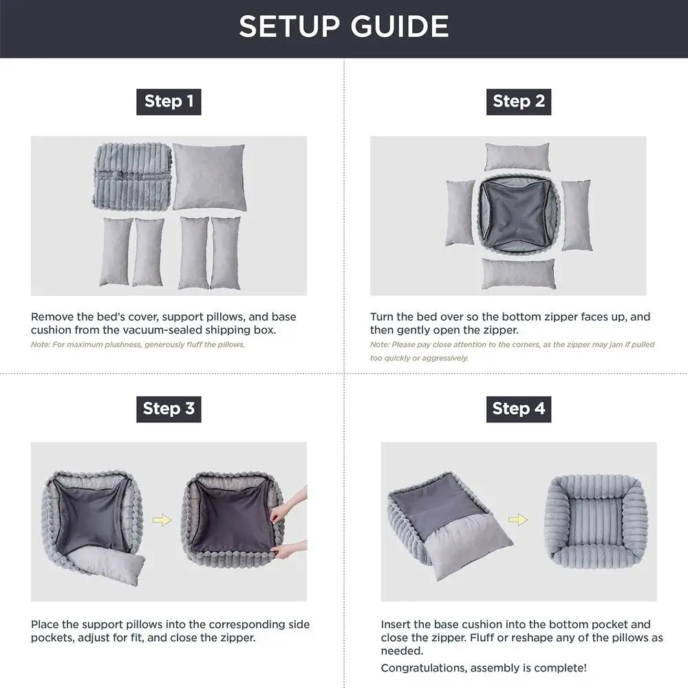 The bed is available in four sizes (Small to Extra Large), catering to a wide range of dog and cat breeds, ensuring that every pet can find a perfect fit.