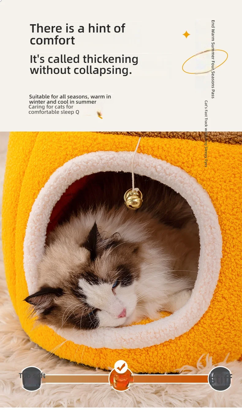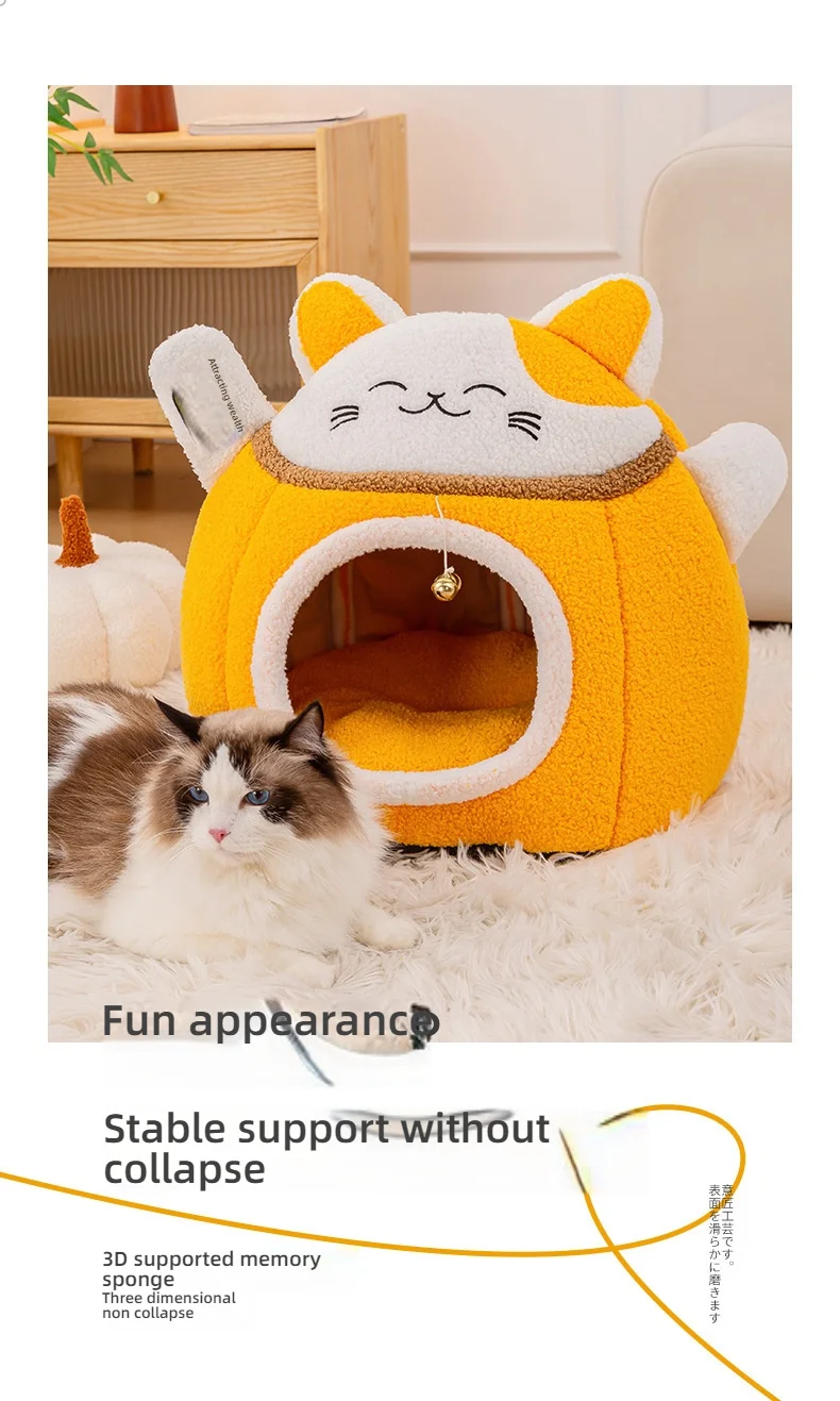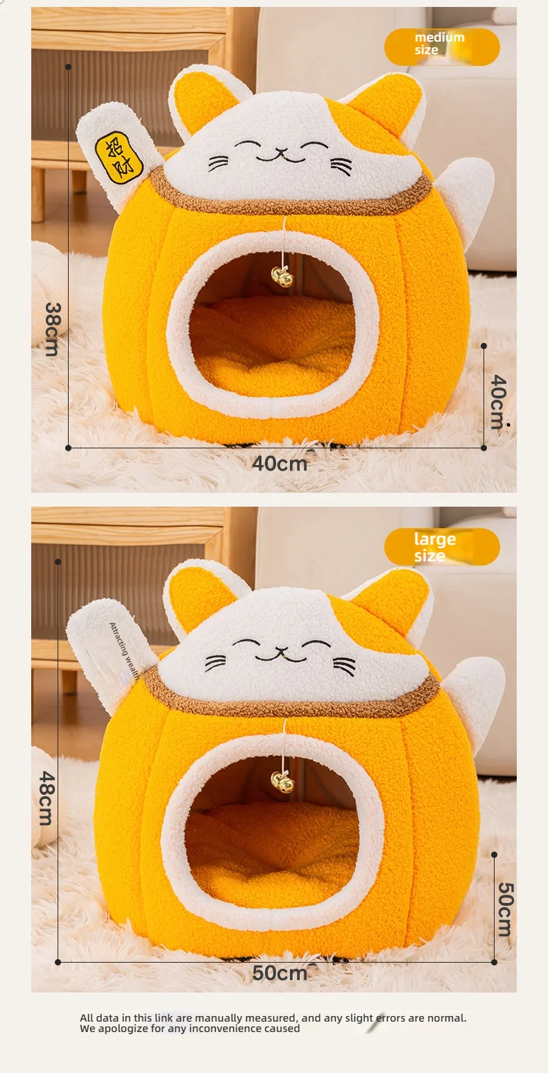 Lucky Fortune Cat Pet Bed - Winter Warm Semi-Open Fleece Round Bed for Cats & Dogs | Cozy Lucky Pet House, Soft Cushioned Kennel
