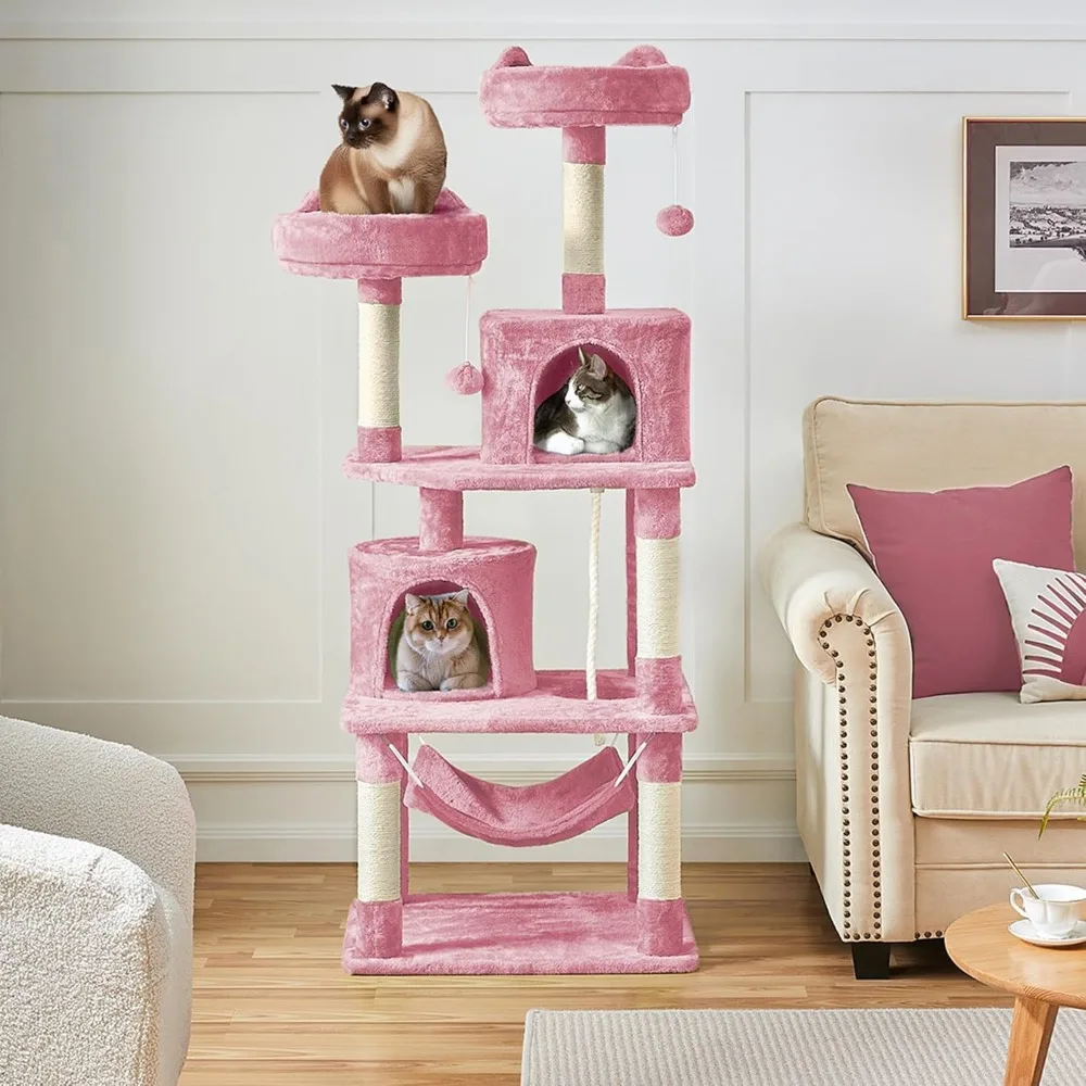 Luxury 62.5 Inch Cat Tree Tower with Platforms, Hammock, and Scratching Posts - Ideal Playhouse for Kittens and Cats