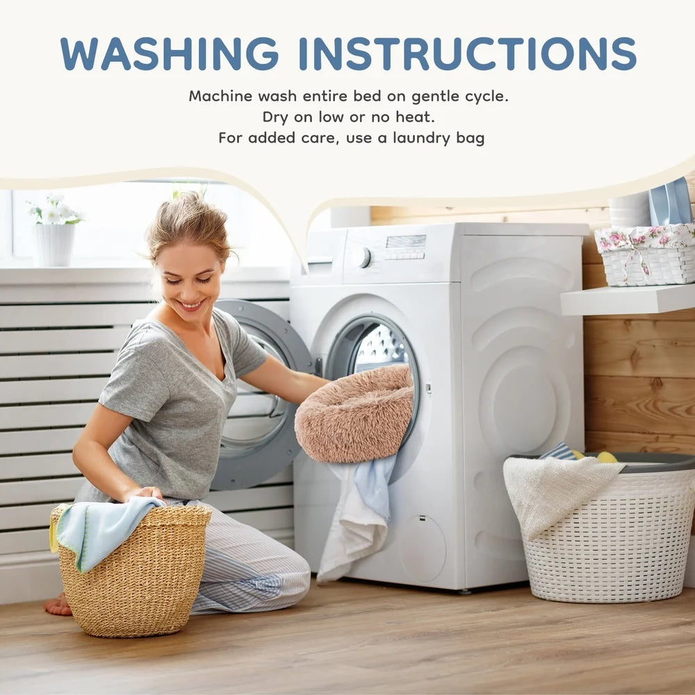 Maintaining cleanliness for our dog beds is hassle-free thanks to their uncomplicated one-piece washable structure, promoting straightforward upkeep and a sanitary space for your pet. (Directions: Machine wash in cold water. For optimal results, refrain from using bleach and tumble drying. )