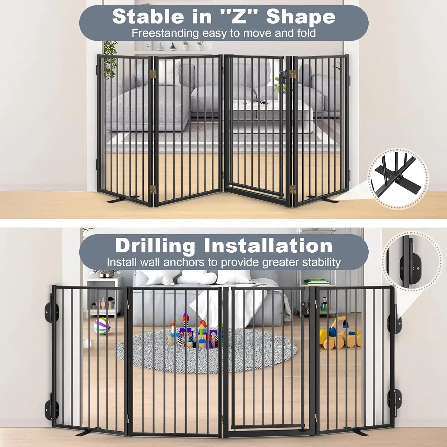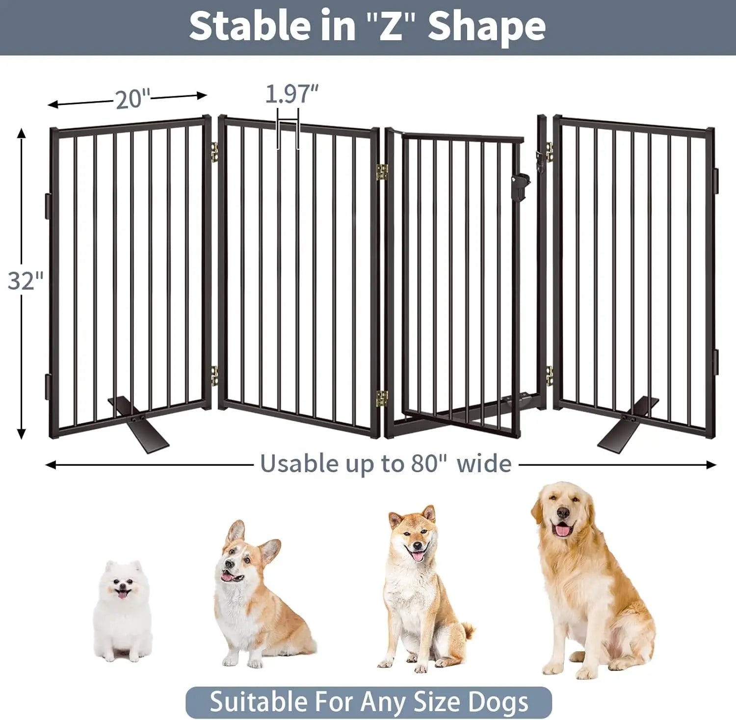 Metal Freestanding Dog Gates with Door for Outdoor Indoor,80'' Extra Wide 32'' Tall Free Standing Dog Gate for Doorways