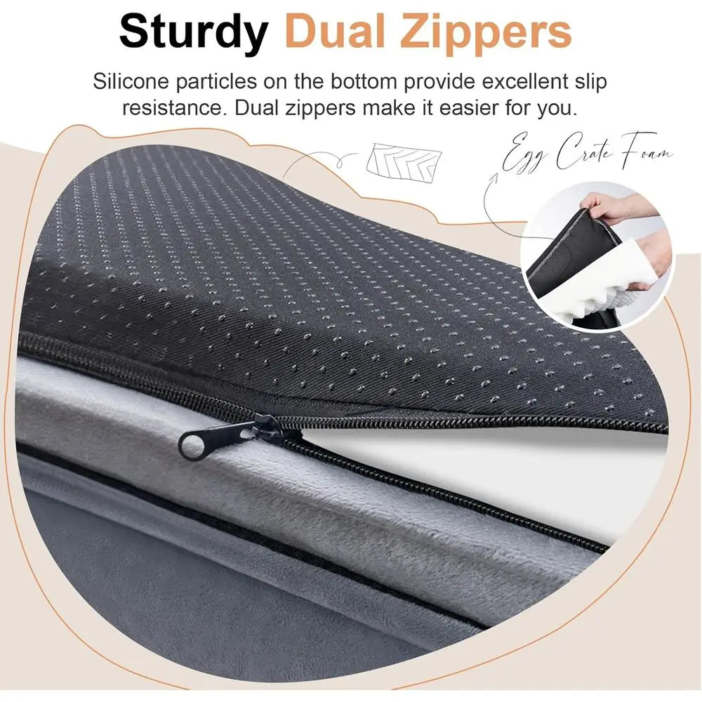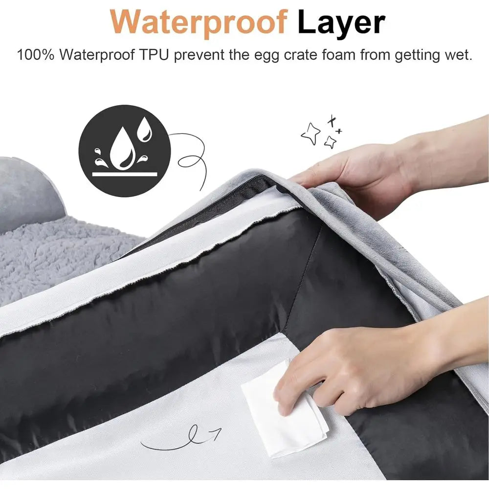 Experience ultimate comfort with our soft velvet and waterproof dog bed. The plush velvet surface and cushioned bolster provide a cozy sleeping environment for your pet, while the waterproof layer protects the egg crate foam from moisture. Designed with orthopedic support in mind, the high-density 3-inch egg crate foam evenly distributes weight and cradles your pet's body, relieving pressure on joints. This bed is ideal for older dogs and those with arthritis, ensuring a restful sleep.