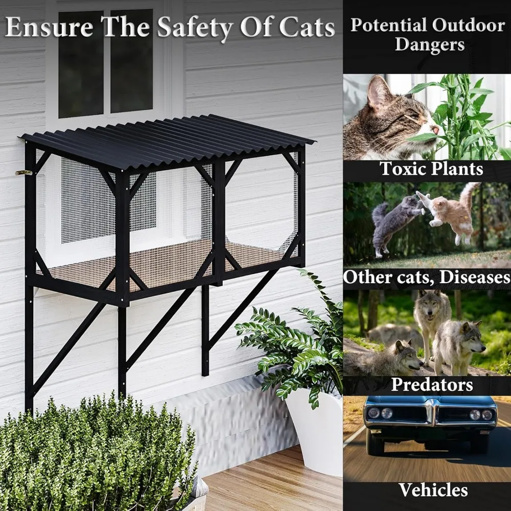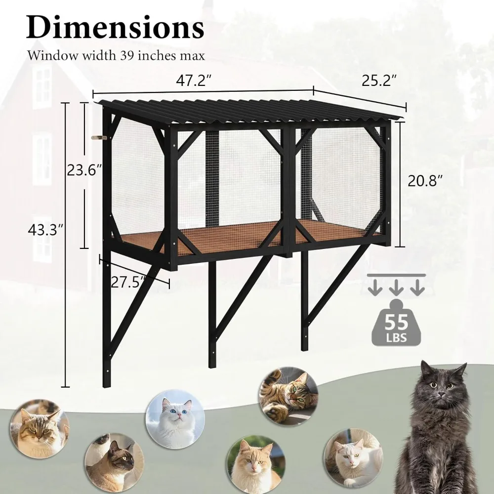 Outdoor Cat Enclosure 43.3 Large Catio for Sunbathing, Napping, and Overlooking - Sturdy Window Perch Ideal for Large Indoor Cat