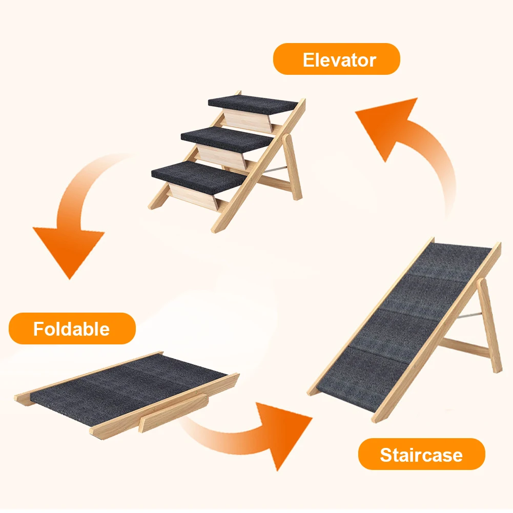 Outdoor Steps Dog Stairs Foldable Wooden Cat Climbing Ladder Non-slip Carpeted Ramp Ladder for Indoor Outdoor Pet Toys
