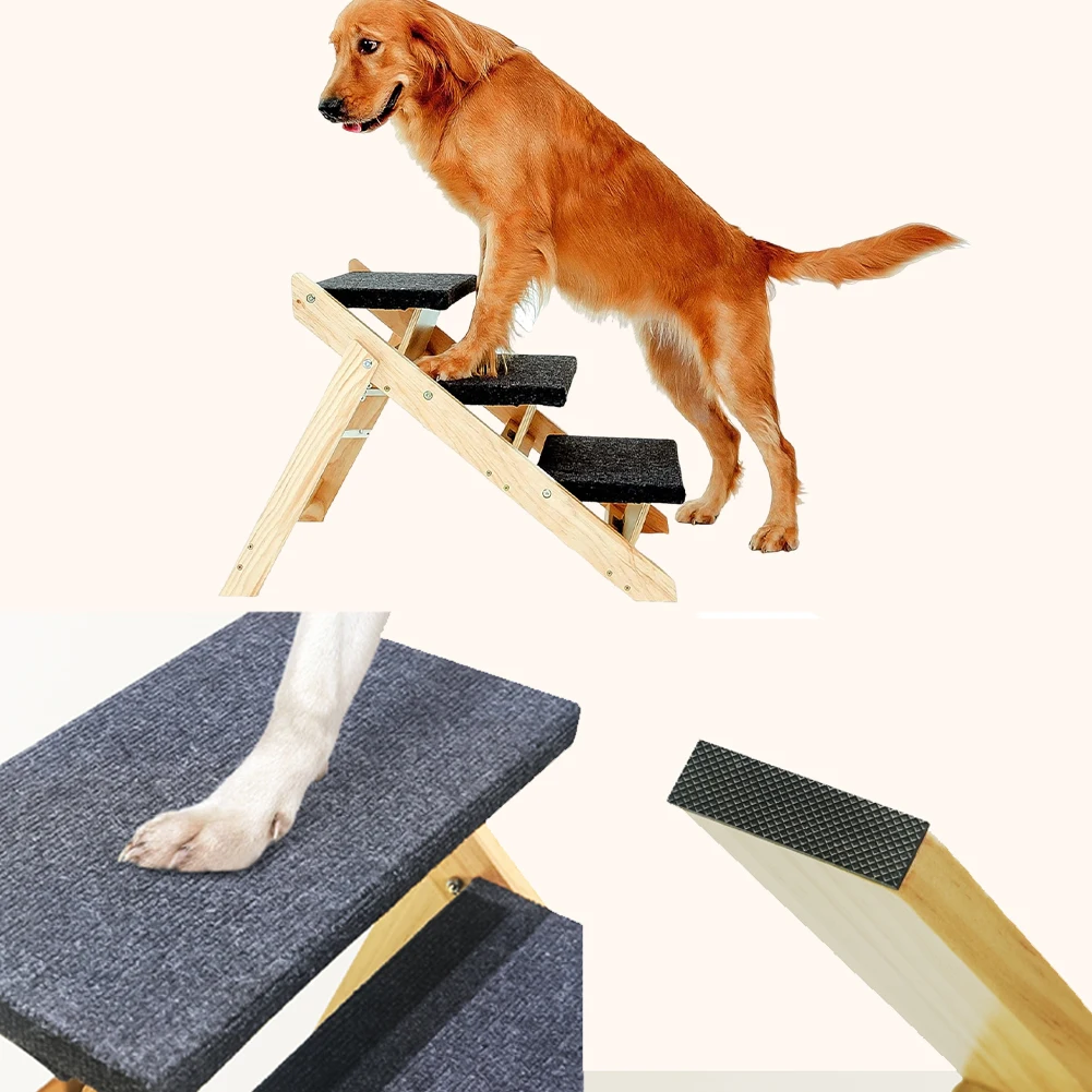 Outdoor Steps Dog Stairs Foldable Wooden Cat Climbing Ladder Non-slip Carpeted Ramp Ladder for Indoor Outdoor Pet Toys