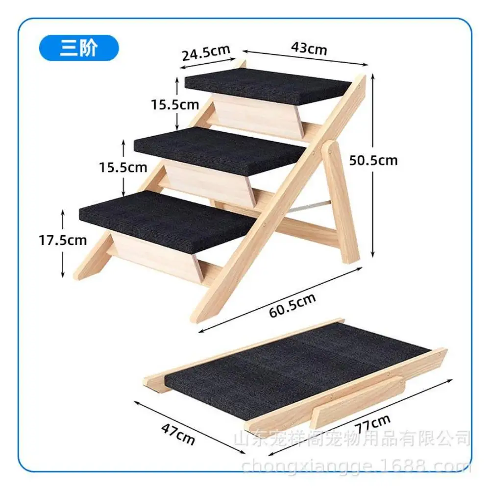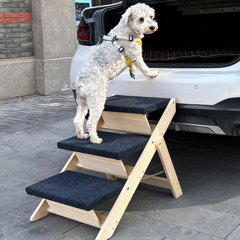 1.Premium Wooden Construction: Our dog stairs are a safer, eco-friendly, and more convenient alternative to typical bed ladders or couch ramps. Made from high-quality wood with non-slip tips on the legs to ensure stability for your pet.