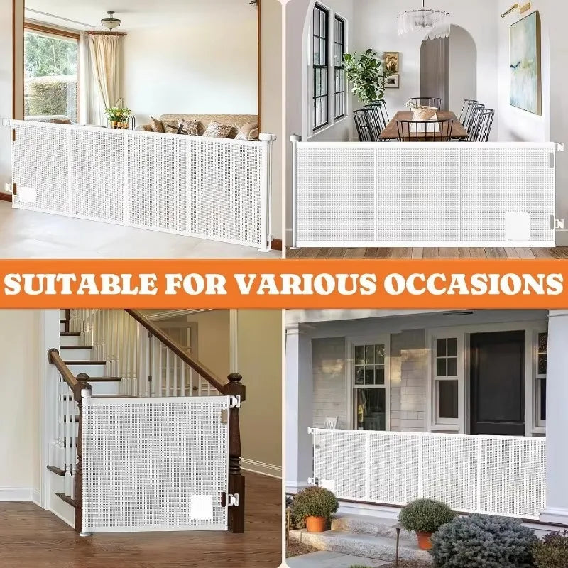 - Stable and Reliable: The pet gate indoors comes with three high-quality rods to support the mesh baby gate, preventing it from toppling over. These rods also protect the gate's mesh from tearing and keep little ones from crawling underneath