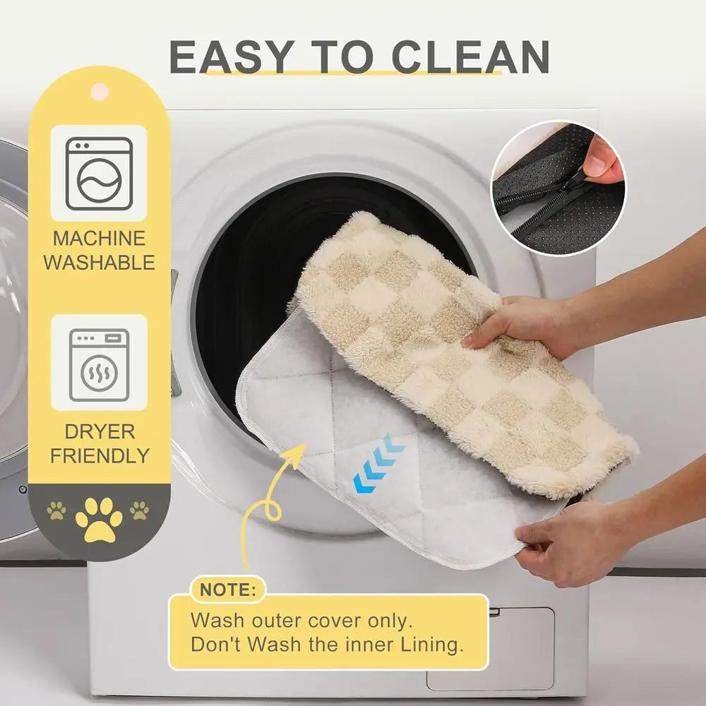 NON-SLIP & SECURE: The cat heating pad bottom features intensive anti-slip dots to prevent sliding, keeping the mat fixed on smooth floors, sofas, or cages. Whether used as a cat bed, crate mat, or window perch pad, it stays stable while your pet rests, stretches, or curls up.