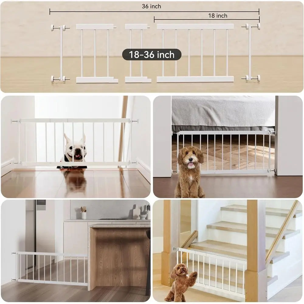 【Fits 18-36inch Openings】Please measure the width before you purchase, the max wide is 36inch. Adjustable with 2 extensions, this short dog gate fits openings from 18 to 36 inches, making it perfect for doorways, hallways, stairs, and more.