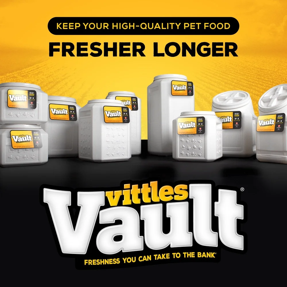 Vittles Vault Outback Stackable Pet Food Storage Container, Grey, Up To 40 Pounds Dry Dog Food - Keep your pet’s food fresh and flavorful with our sealed dog food storage container, designed to hold up to 40 pounds of pet food. Made from HDPE plastic, this durable cat and dog food storage solution is a great choice for maintaining the quality of your pet's kibble. Its Gamma Seal Technology utilizes a threaded locking system and double gaskets, providing a controlled moisture balance while keeping pesky pests at bay. This storage container is suitable for a variety of dry foods, including birdseed and goat feed. Our pet food storage bins are engineered to last, resisting shattering and cracking. For indoor or covered outdoor use, although climate-controlled storage is recommended. Proudly .