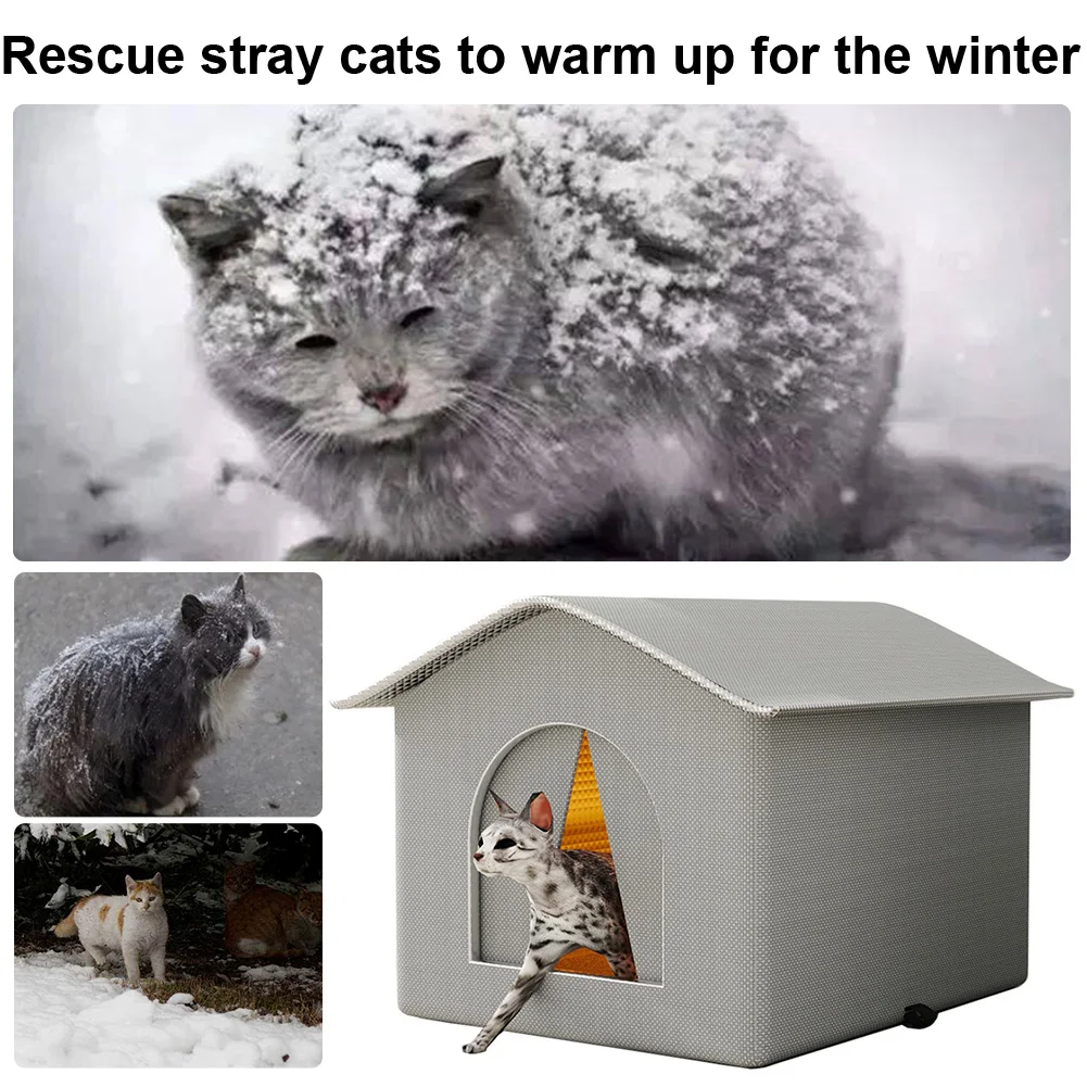 Outdoor Cat House Weatherproof Feral Cat Shelter Stray Cat Shelter for Winter Wild Animal Tent Bed