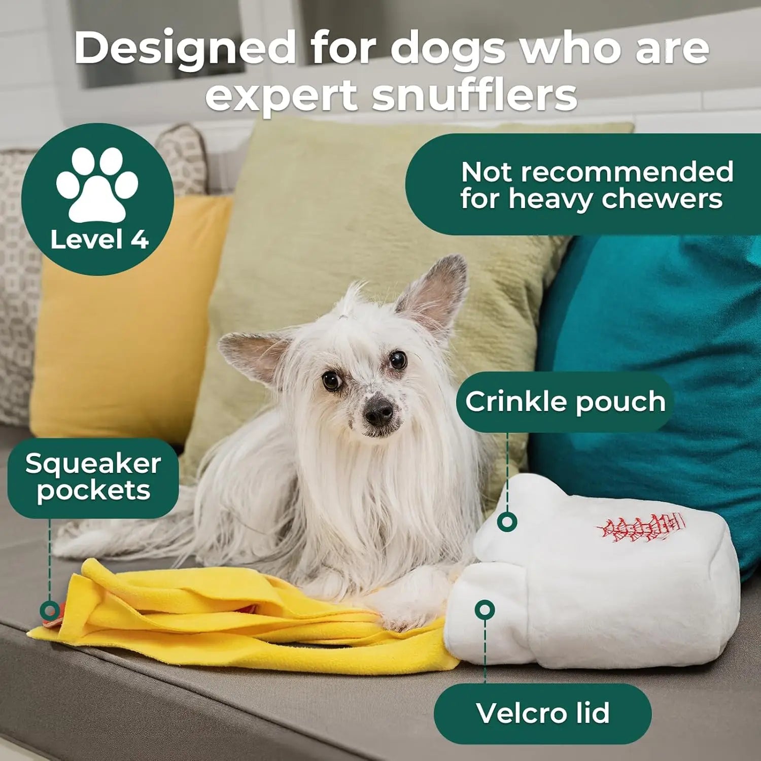 Take-Out Box Snuffle Dog Toy - Interactive Plush Treat Puzzle for Small Medium Dogs, Slow Feeder with Squeaky