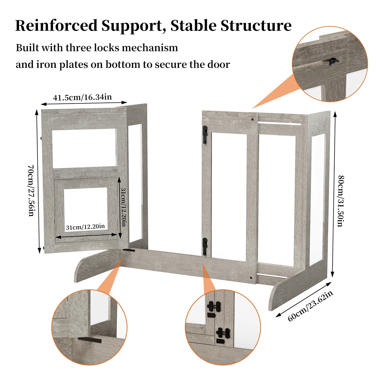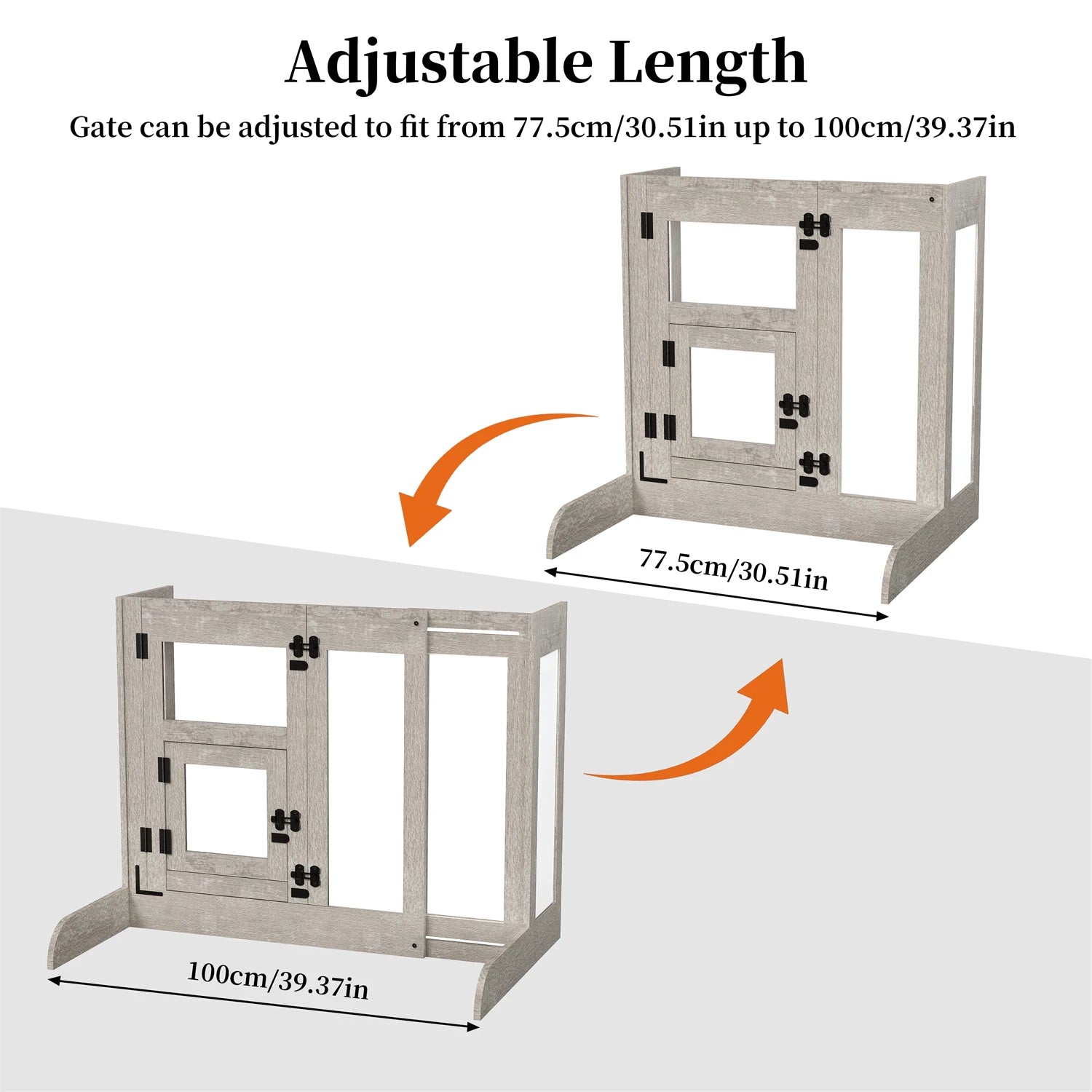 Tempered Glass Dog Gate Adjustable Length From 77 to 100cm Pet Door Gate Barrier Fence Panels with Lock for Doorways Stairs