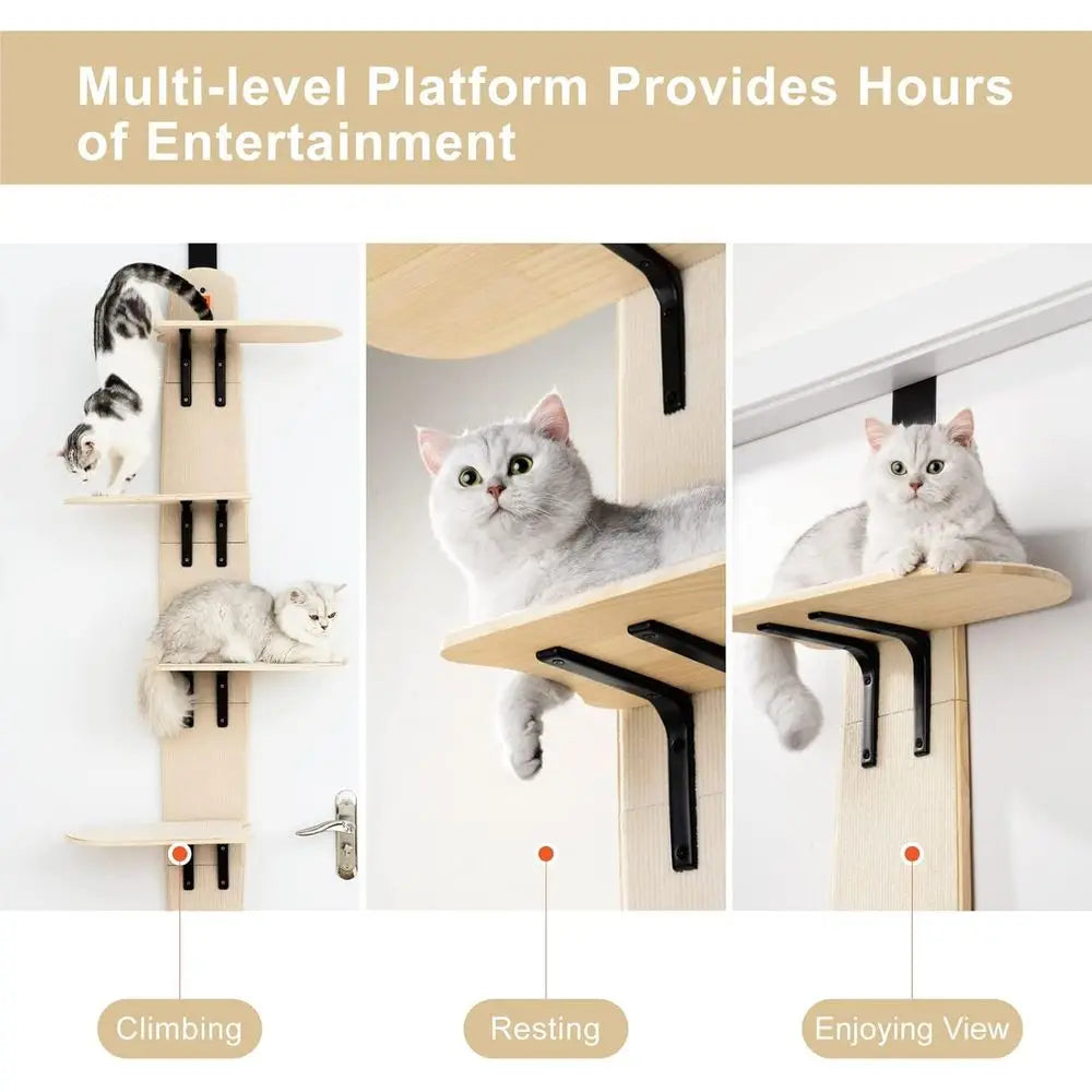 Vertical 4-Level Door-Mounted Cat Tree Tower with Carpeted Perch for Indoor Cats (67.3H x 22.3L x 10.5W)