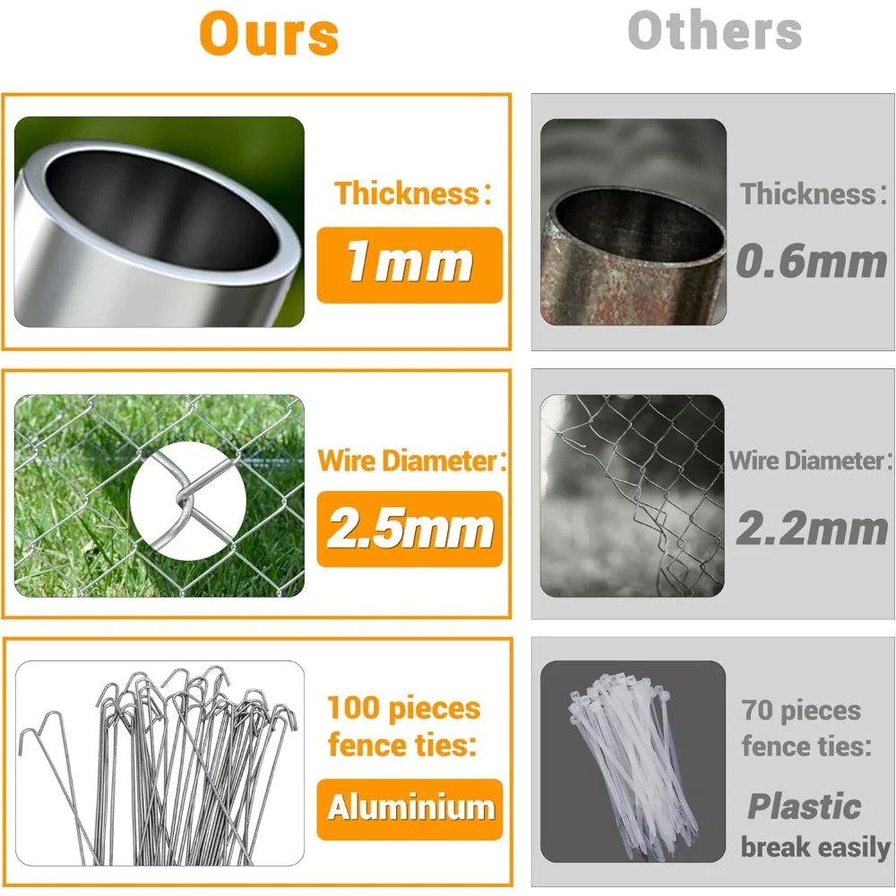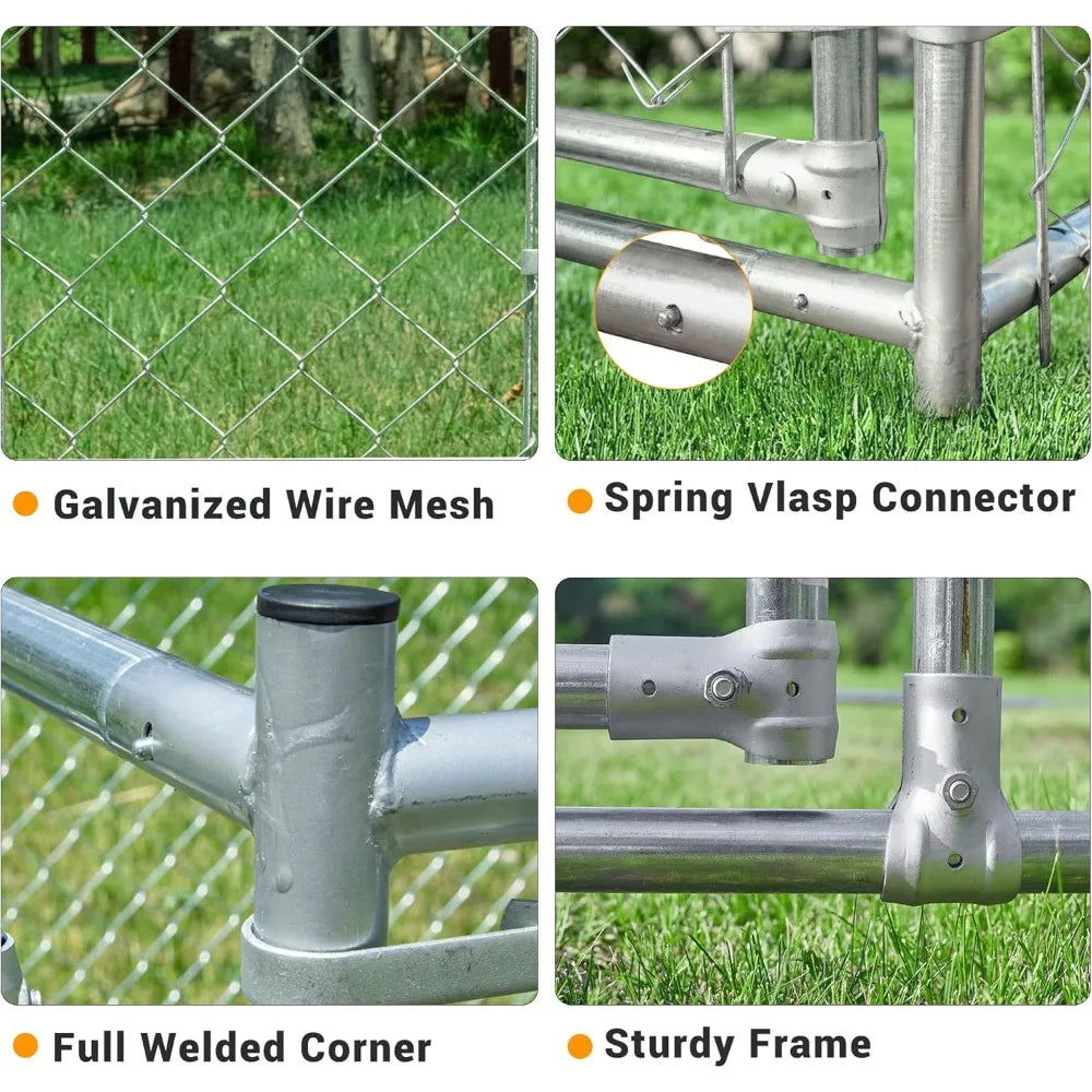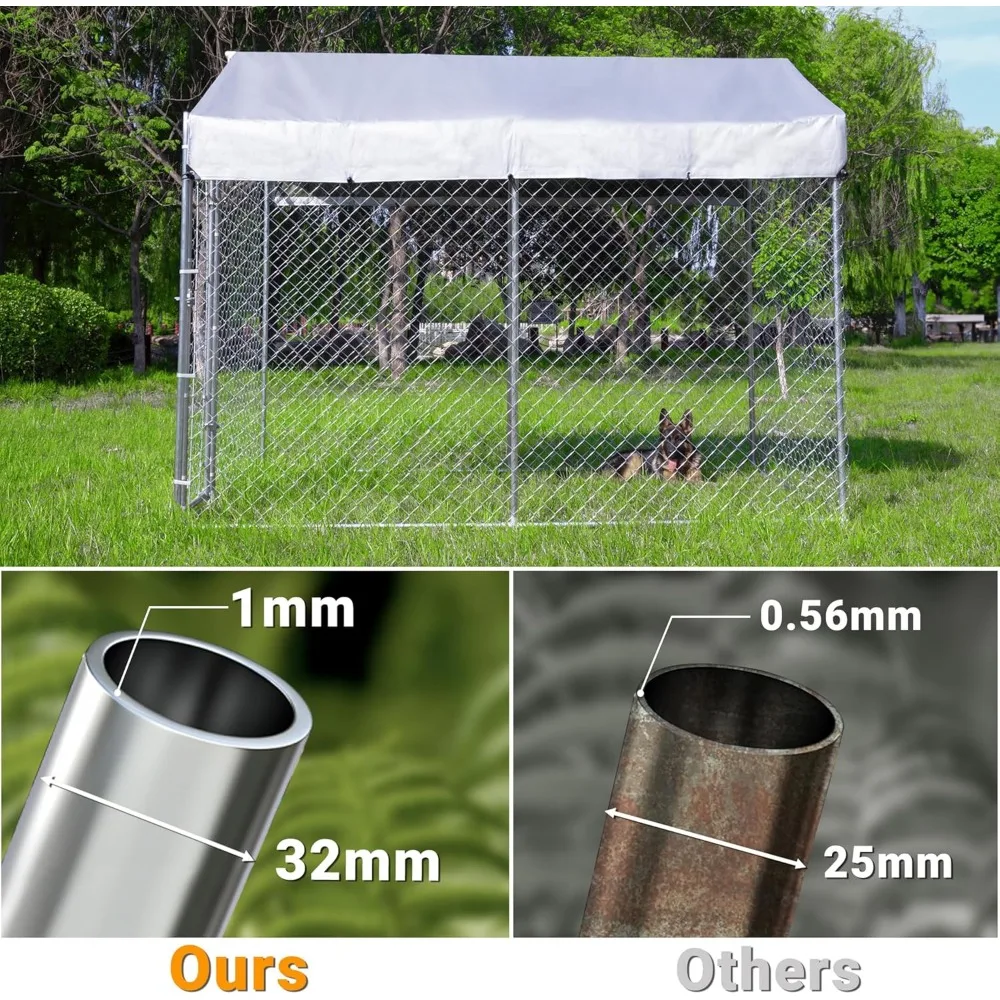 - 【⭐Upgraded Structure and Stronger Material】: The upgraded outdoor dog kennel is made of 1.25-inch thick galvanized metal pipes and 2.5mm steel wire mesh, which is not only more durable and rust-resistant, but also has raised legs that can be inserted into the ground to ensure that the kennel is not easily moved.